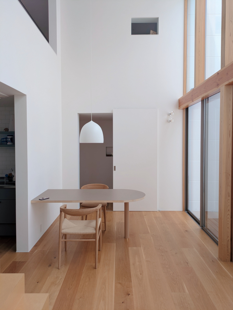 ![]() 2025.7.9 久しぶりにBONDさんへ。 元気だったかい〜。 せっかくなので撮影もさせていただきました。 ご協力ありがとうございましたーm(- -)m ![]() ![]() ![]() ![]() ![]() ![]() ![]() ![]() 2024.8.4 引き渡しを終えて数カ月。 雑誌取材でお邪魔させていただきました。 バイクの雑誌じゃないよ! 外壁がいい色になってきたな〜。 ![]() ![]() 2024.5.13 嘘みたいな空だったので撮影もさせていただきました。携帯で(笑) 長居しすぎて失礼いたしましたー(^ ^) ![]() ![]() ![]() ![]() ![]() ![]() ![]() ![]() ![]() ![]() ![]() ![]() ![]() 引き渡し 完成となりましたー。ぱちぱちぱち(^ ^) 暑い夏を乗り切りながら難しい納まりを丁寧に作っていただいた監督さん、大工さん、すべての職人さんに感謝申し上げます。 コートハウスが作り出す特別感が住まうご家族の幸せを高めてくれることでしょう。 逆に仕事に行きたくなくなるのではと心配しつつ。お幸せにお過ごしくださいませ?。 完成おめでとうございます。 ![]() これは家です!! ![]() 二階から吹き抜けリビングを介して光庭(コート)を見る。 お施主さんが自主施工でお庭を作る予定。砂利は仮敷き。 ![]() 天井に繋がりを持たせて光&風が届くように意識しました。 ![]() この写真一番好き。 12帖のリビング空間とは思えないでしょ。 ![]() 北向きの大窓なので直接の太陽光は入ってきません。 柔らかい間接光で室内を満たしてくれる光庭(コート)です。 ![]() ご主人チョイスでオークの複合フローリングを採用しました。 ![]() 私のYチェアがしっくりきすぎている笑 二層のコートってなかなかないよねー。 ![]() デッキからダイニングを見る。 サッシが目立たないように外にふかして納めてもらっている。 素晴らしい施工者さんがいてこそ成り立つお仕事です。 ![]() 隙間に階段がある感じを作りたかった。 モーゼの十戒みたいでいいかんじじゃない? ![]() 吹き抜けからフリッツハンセンを見る。 上から見ても美しいね。掃除もしやすいし。 ![]() 階段に座りたい奥様の要望を叶えるため三段ほどリビングにはみ出ている。 二段でもなく四段でもなく「三段」というのが個人的にGOOD。 ![]() 玄関からふっとギャップのある吹き抜けリビングへinする。 玄関からの明るさと開放感は狙ったわけではなくただのマグレだ! ![]() 玄関脇に2.2帖の物置。 スコップとかタイヤとかガシガシ壁にぶつけるのでラワン仕上げとしました。 奥に見えるのはランドリールーム。大きな窓があるので明るい?。 ![]() 玄関まわり完璧。 監督&棟梁に感謝。 ![]() 玄関ドアはスリガラスと強化ガラスのペア。 スプルスにオスモ塗装でハンドルはユニオン製。 ![]() 特別な気持ちでお出かけすることできるでしょう。 カタチの力というものを知っている分、カタチという存在から逃げない建築士でいたい。 ![]() 玄関ポーチ内は5.3帖で自転車を置いたりできる。 ![]() 子供の頃に行って心に残った木下大サーカスの入り口デザインを真似ました。 実現することができてよかったです(^ ^)クライアントに感謝。 ![]() デッキ材にはセランカンバツを採用。棟梁の美しい仕事。 経年変化でもっと素敵になっていくことでしょう。 ![]() ![]() リビング脇に三帖のおこもり和室。 床の間は階段下を有効利用しました。 ![]() タモ材の手摺。階段踏板は集成材下地にラワン張り。 ![]() ![]() 二階の脇にある三帖のWIC。 床は白ラワンの半艶ウレタン塗装。 こんな場所でも下地材を丁寧に施工してくれた棟梁の技が光ります。 ![]() ワンルーム形式でつくった繋がりのある二階寝室。10.7帖。 天井にあるご主人専用懸垂棒は万が一使われなくなったとしても服をかけるとちょうどいい位置&高さにしました笑 ![]() youtubeで宮崎駿さんが窓の外の景色を見ながら階段下りてくるシーンが好きでここで実現。 なんの話やねん笑 ![]() 集成材にメラミンを張っただけのテーブルを作ってもらった。 脚は一本で支えていてお掃除もしやすい。色はご主人チョイス。 動線にあるテーブルなので身体ぶつけてもいたくないように丸くした優しい私。 ![]() 奥様チョイスのリクシルキッチン ノクトのオリーブグレー。 リビングと切り離したクローズ型のキッチン形式とした。 ![]() どんな土地(環境)にも空は必ずあるのであーる。 計画概要 名称:BOND 計画内容:一戸建ての住宅 計画地:石川県白山市 構造:木造二階建て 敷地面積:202.26u(60.57坪) 延床面積:95.63u(28.92坪) 設計期間:2022.12〜2023.5 工事期間:2023.5〜2024.1 撮影:稲森予人 ![]() 2023.10.31 監督さんがハンガーパイプ&シール&ポストなどを取付中。よく働く監督さんです。 明日は完了検査。週末オープンハウスで来週引き渡し。 ![]() ![]() ![]() ![]() ![]() ![]() ![]() ![]() ![]() 2023.10.28 今日はポーチ土間の型枠ばらしと設備屋さんが試運転をしてくれていました(^ ^) ![]() 2023.10.25 養生がはがされて引き渡し間近の現場です。 とてもきれいな仕上がりに驚きつつ監督さん大工さんすべての職人さんに感謝です。 暑い夏が続くなか本当にがんばっていただきました。 職人さんたちのか