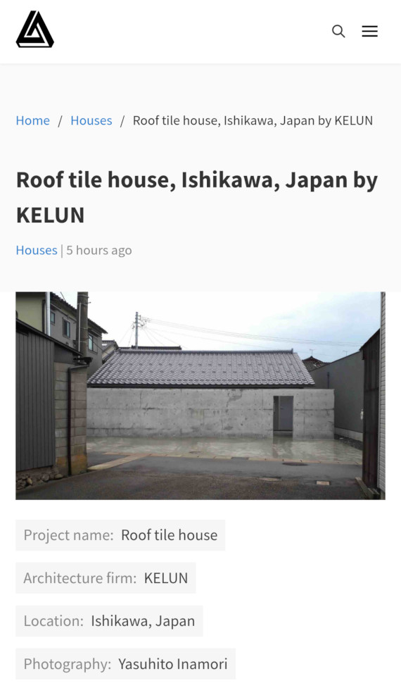 瓦の家が海外のwebsite「Amazing Architecture」に掲載されました