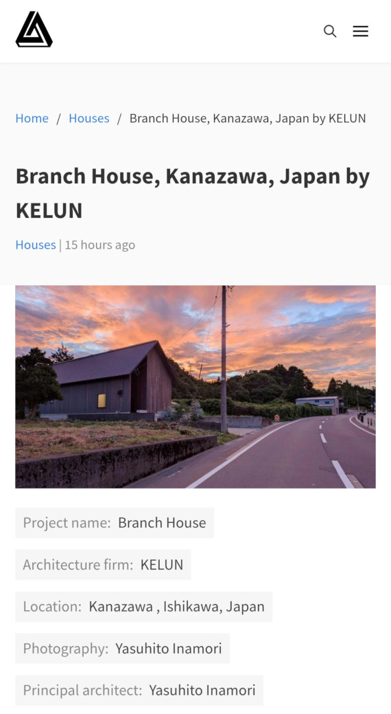Branch houseが海外のwebsite「Amazing Architecture」に掲載されました