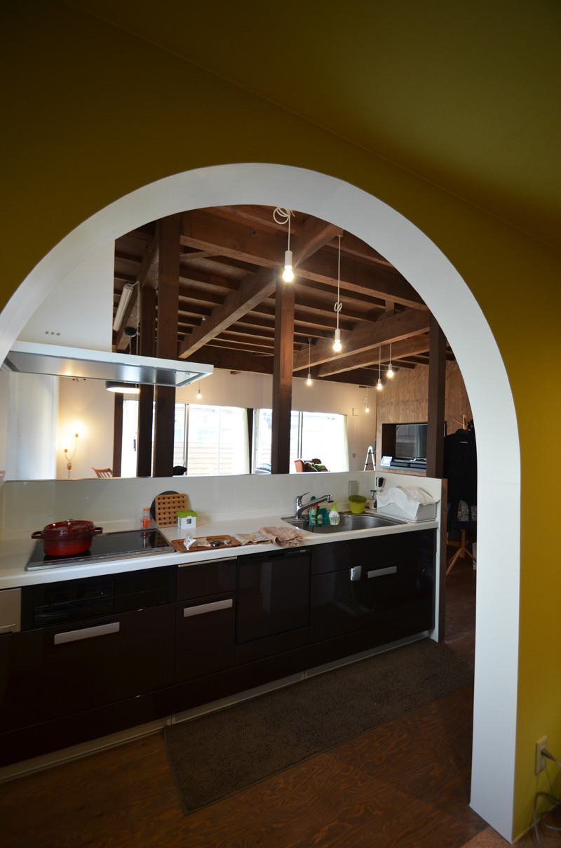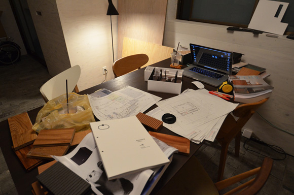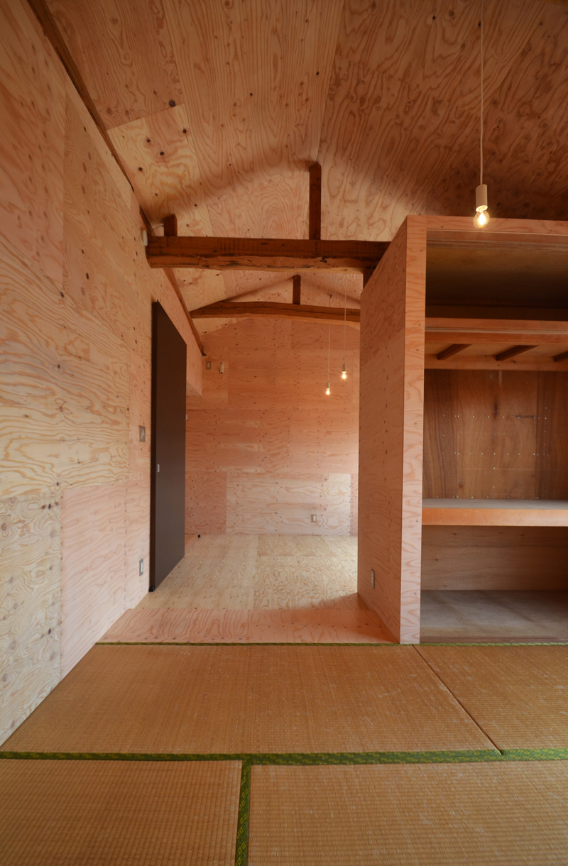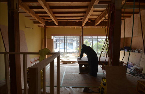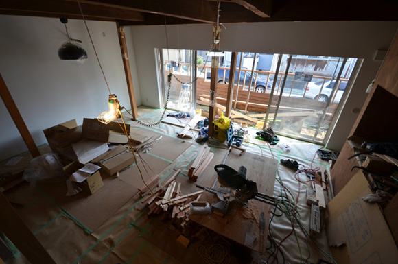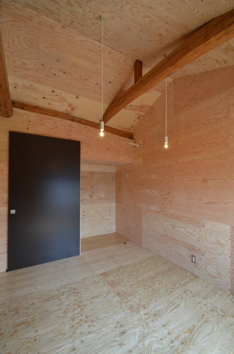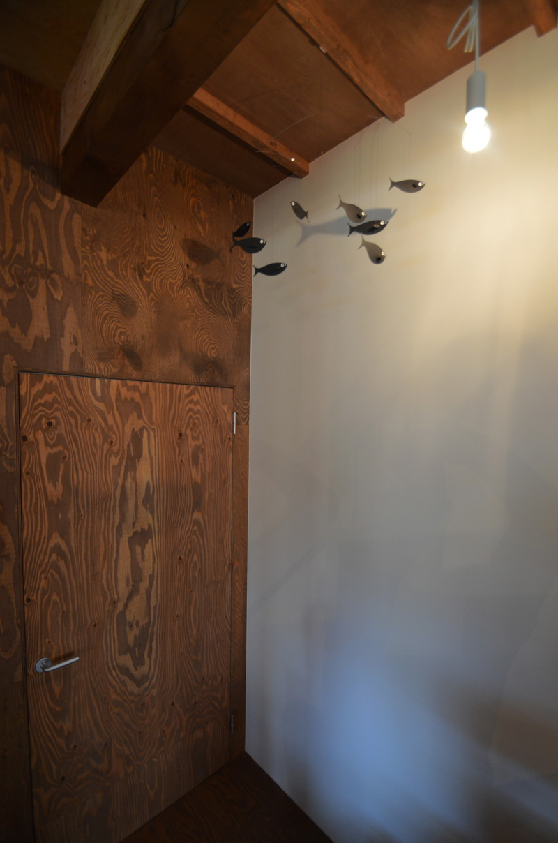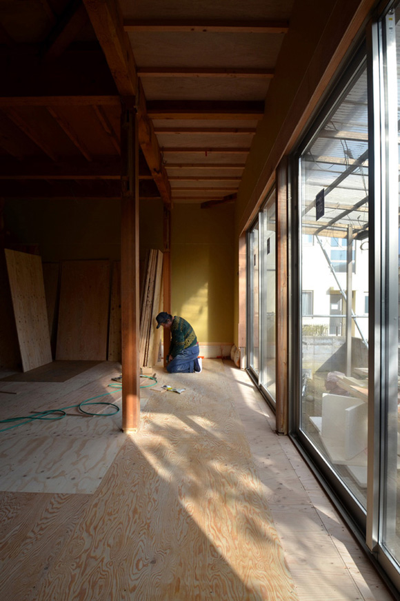 ![]() カエルさんが座ってる席が一番VIP席な気がする。 ![]() キッチンは既製品でリクシル製。 手元が見えないように&油水ハネ防止のため立ち上がり壁を作っている。 ![]() ![]() 壁と同じ構造用合板で扉をつくりまして ![]() ダイニング照明は換気機能付きクーキレイ ![]() リビングから南の庭を見る。 ![]() 元は押入だった場所がテレビ置場になったのさ。ご主人のアイデア。 ![]() キッチンの裏は冷蔵庫や食器棚を隠せる大ーきなパントリー。 ライトグリーンのクロスを張り世界観を変えてみました。 〜ここからは引き渡し時の写真〜 ![]() リノベーションならではの構造材を露出させ広いLDKを作った。 ![]() リビングには南向き5.3mの大開口を設けた。 ![]() キッチン脇に朝日が入る換気窓を設けた。 ![]() ![]() ![]() ![]() 既存の押入と畳を再利用 ![]() ![]() ![]() 天井を見上げる 天井材を張らずに既存の構造体を塗装して現わしとした ![]() 外壁、屋根共にリノベーション。 ![]() ![]() ![]() 下見板張りの板塀で既存の庭を囲った。将来的にはデッキができる予定。 ポリカの波板屋根は既存のものをそのまま利用した ![]() ![]() パカッと開く ![]() もともとの台所換気扇を再利用しました ![]() ![]() ![]() ![]() ![]() 改修前 ![]() 改修前 ![]() 改修前 計画概要 名称:Fism 計画内容:リノベーション 計画地:石川県金沢市 構造:築37年の2階建て木造住宅 敷地面積:231.45u(70.01坪) 延床面積:111.50u(33.72坪) 設計期間:2013.10〜2013.12 工事期間:2014.1〜2014.4 撮影:稲森予人 <施工> 加賀建設株式会社 担当:寺井さん 大工:池端さん 設備:株式会社オキシー 板金工事:寺田建築板金 <外部仕上げ> 屋根:ガルバリウム鋼板縦ハゼ葺き 外壁:既存モルタル壁補修の上、リシン吹き付け 開口部:アルミサッシ(オールペアガラス) <内部仕上げ> LDK 天井:既存構造体現わし+塗装 壁:構造用合板+塗装/ビニルクロス張り(リリカラ) 床:構造用合板+塗装 パントリー・WC・洗面所 天井:ビニルクロス張り(リリカラ) 壁:ビニルクロス張り(リリカラ) 床:ビニル床シート(リリカラ) 寝室 天井:構造用合板 壁:構造用合板 床:構造用合板+塗装/既存畳 浴室 ユニットバス(TOTO) キッチン 天板:人造大理石 シンク:ステンレス レンジフード:サンワカンパニー 熱源:IH 食洗機、魚焼きグリル付き 〜ここからは施工中の写真〜 ![]() 2014.3.25 引き渡し間近なので現場は混乱状態。 ![]() 板塀製作中。大工さんは花粉症らしい。ぷぷぷ。 ![]() がびーん。扉の木目が縦横逆だ。やり直しをお願いしました。 ![]() 2014.3.24 塗装屋さんの車 ![]() 2014.3.22 クロス張り工事 ![]() 外壁吹付け工事中 既存モルタル壁に新たにリシン吹付仕上げとしただけのシンプルな仕事です。色はクライアントが選ばれたものである。 外部を触ると大きなコストがかかるため建物の形状は変えていない。 こんな時は余計なことをせずに作りすぎないことだけを意識した。 ![]() 2014.3.20 10回目の現場定例打ち合わせ クライアント、施工、設計で集まっての最後の打ち合わせ終了。引き渡しまで残すところ「10日」です。 ![]() 2014.3.18 照明計画 この空間にはなるべく簡素な手法の光がいいだろうってことで裸電球を選びました。 ![]() 塗装工事 ![]() 埋木が顔に見えるね。 ![]() 2014.3.15 階段ができたよ ![]() 新規柱で補強 ![]() 2014.3.13 塗装工事スタート ![]() 2014.3.12 二階の内部造作工事終了 既存の押入も合板を張ることにしました。こんな押入ってなかなか無いやね。 ![]() 2014.3.7 内部造作工事中 この現場の大工さんはセンスがあるので頼もしい。 ![]() ![]() 2014.3.5 骨格が現れてきました。 ![]() 2014.3.3 床を張っています。 節の多い数枚の合板をダメだしたんだけど、棟梁ゴメンね。僕の仕事なんだ。 ![]() 2014.3.1 なんだかんだで今回もお世話になる構造用合板。 荒い材料なので大工さんがサンダーでキレイにしながら仕分け中。使うもの。使わないもの。壁用。床用。などなど。 ![]() 2014.2.18 ![]() 2014.2.14 屋根板金工事 ガルバリウム鋼板の色は「コゲチャ」に決定したよ ![]() 2014.2.13 現場監督&棟梁 二人の身長が低いんじゃなくて天井が高いのです。 ![]() 整理整頓。棟梁の血液型はたぶんA型。 ![]() 2014.2.5 現場で屋根板金打ち合わせ 気温はマイナス2度。寒いので現場にコーヒーを差し入れ。 ![]() 2014.1.31 電気工事スタート 一部の電気配線が露出して見えてくるので配線位置がキレイに見えるように微調整をお願いした。 ![]() 2014.1.26 大工さんがラジオを聴きながら陽気に下地工事中 ![]() 2014.1.21 解体内容が難しいので大工さんが解体をしてくれています。 ![]() 2014.1.15 解体工事スタート ![]() 2014.1.11 事務所にて電気屋さんと照明やコンセントの打ち合わせ。 ![]() 2013.12.25 最終決定案模型 ![]() ![]() 2013.11.08 施工会社数社に見積り図面提出 物件探しからスタートしたこのプロジェクトもクライアントと初めてお会いしてから「108日目」で設計を終えて見積りへ 数日後には電卓叩いて見積書にらめっこが待っている ![]() 2013.10.06 実施設計打ち合わせ 終わって時計を見たらなんと六時間打ち合わせしてい