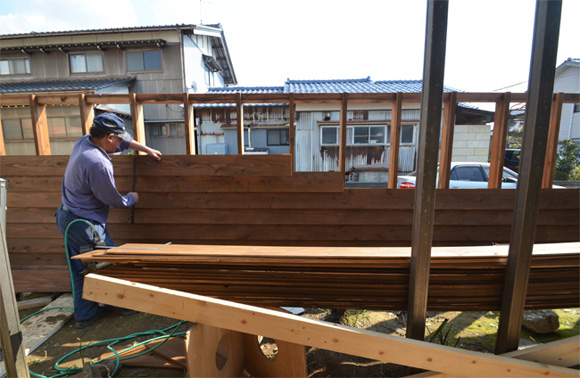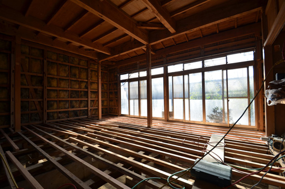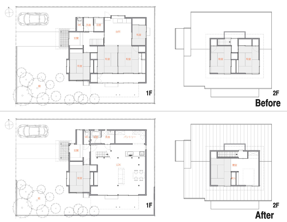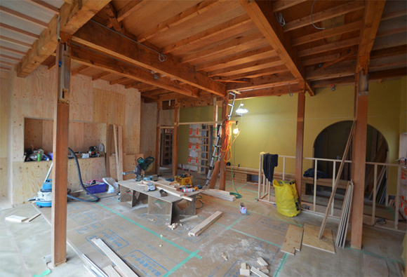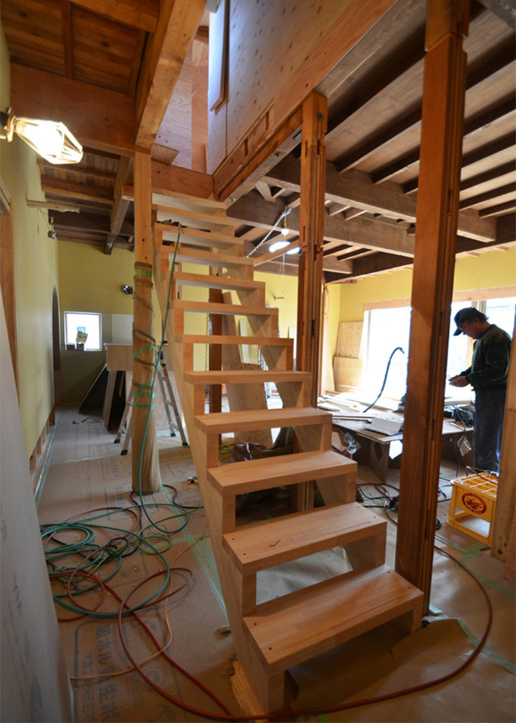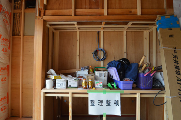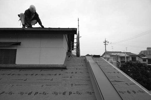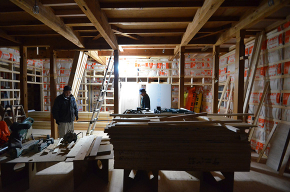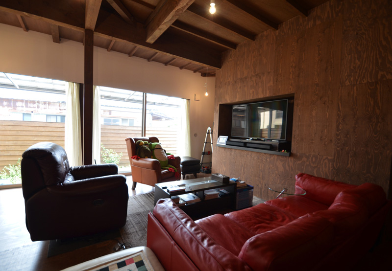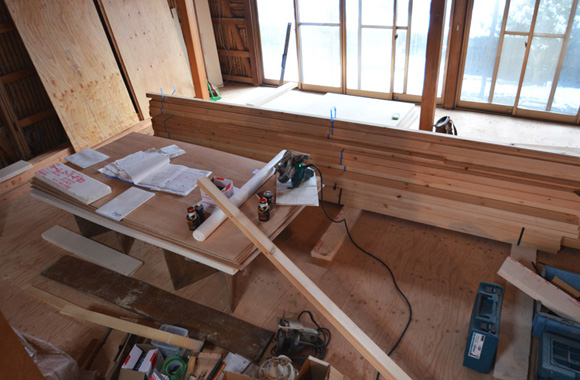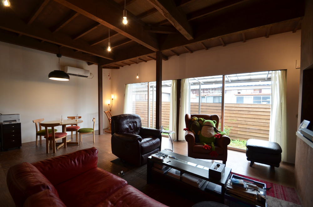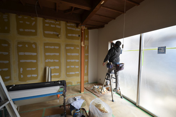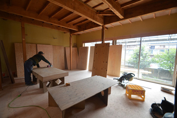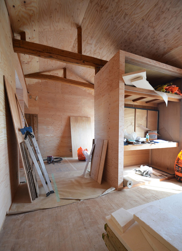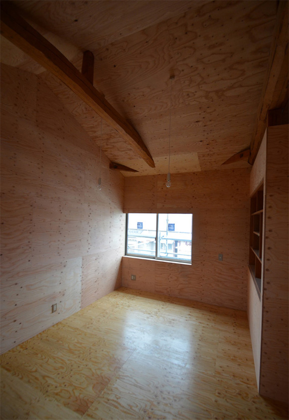 ![]() カエルさんが座ってる席が一番VIP席な気がする。 ![]() キッチンは既製品でリクシル製。 手元が見えないように&油水ハネ防止のため立ち上がり壁を作っている。 ![]() ![]() 壁と同じ構造用合板で扉をつくりまして ![]() ダイニング照明は換気機能付きクーキレイ ![]() リビングから南の庭を見る。 ![]() 元は押入だった場所がテレビ置場になったのさ。ご主人のアイデア。 ![]() キッチンの裏は冷蔵庫や食器棚を隠せる大ーきなパントリー。 ライトグリーンのクロスを張り世界観を変えてみました。 〜ここからは引き渡し時の写真〜 ![]() リノベーションならではの構造材を露出させ広いLDKを作った。 ![]() リビングには南向き5.3mの大開口を設けた。 ![]() キッチン脇に朝日が入る換気窓を設けた。 ![]() ![]() ![]() ![]() 既存の押入と畳を再利用 ![]() ![]() ![]() 天井を見上げる 天井材を張らずに既存の構造体を塗装して現わしとした ![]() 外壁、屋根共にリノベーション。 ![]() ![]() ![]() 下見板張りの板塀で既存の庭を囲った。将来的にはデッキができる予定。 ポリカの波板屋根は既存のものをそのまま利用した ![]() ![]() パカッと開く ![]() もともとの台所換気扇を再利用しました ![]() ![]() ![]() ![]() ![]() 改修前 ![]() 改修前 ![]() 改修前 計画概要 名称:Fism 計画内容:リノベーション 計画地:石川県金沢市 構造:築37年の2階建て木造住宅 敷地面積:231.45u(70.01坪) 延床面積:111.50u(33.72坪) 設計期間:2013.10〜2013.12 工事期間:2014.1〜2014.4 撮影:稲森予人 <施工> 加賀建設株式会社 担当:寺井さん 大工:池端さん 設備:株式会社オキシー 板金工事:寺田建築板金 <外部仕上げ> 屋根:ガルバリウム鋼板縦ハゼ葺き 外壁:既存モルタル壁補修の上、リシン吹き付け 開口部:アルミサッシ(オールペアガラス) <内部仕上げ> LDK 天井:既存構造体現わし+塗装 壁:構造用合板+塗装/ビニルクロス張り(リリカラ) 床:構造用合板+塗装 パントリー・WC・洗面所 天井:ビニルクロス張り(リリカラ) 壁:ビニルクロス張り(リリカラ) 床:ビニル床シート(リリカラ) 寝室 天井:構造用合板 壁:構造用合板 床:構造用合板+塗装/既存畳 浴室 ユニットバス(TOTO) キッチン 天板:人造大理石 シンク:ステンレス レンジフード:サンワカンパニー 熱源:IH 食洗機、魚焼きグリル付き 〜ここからは施工中の写真〜 ![]() 2014.3.25 引き渡し間近なので現場は混乱状態。 ![]() 板塀製作中。大工さんは花粉症らしい。ぷぷぷ。 ![]() がびーん。扉の木目が縦横逆だ。やり直しをお願いしました。 ![]() 2014.3.24 塗装屋さんの車 ![]() 2014.3.22 クロス張り工事 ![]() 外壁吹付け工事中 既存モルタル壁に新たにリシン吹付仕上げとしただけのシンプルな仕事です。色はクライアントが選ばれたものである。 外部を触ると大きなコストがかかるため建物の形状は変えていない。 こんな時は余計なことをせずに作りすぎないことだけを意識した。 ![]() 2014.3.20 10回目の現場定例打ち合わせ クライアント、施工、設計で集まっての最後の打ち合わせ終了。引き渡しまで残すところ「10日」です。 ![]() 2014.3.18 照明計画 この空間にはなるべく簡素な手法の光がいいだろうってことで裸電球を選びました。 ![]() 塗装工事 ![]() 埋木が顔に見えるね。 ![]() 2014.3.15 階段ができたよ ![]() 新規柱で補強 ![]() 2014.3.13 塗装工事スタート ![]() 2014.3.12 二階の内部造作工事終了 既存の押入も合板を張ることにしました。こんな押入ってなかなか無いやね。 ![]() 2014.3.7 内部造作工事中 この現場の大工さんはセンスがあるので頼もしい。 ![]() ![]() 2014.3.5 骨格が現れてきました。 ![]() 2014.3.3 床を張っています。 節の多い数枚の合板をダメだしたんだけど、棟梁ゴメンね。僕の仕事なんだ。 ![]() 2014.3.1 なんだかんだで今回もお世話になる構造用合板。 荒い材料なので大工さんがサンダーでキレイにしながら仕分け中。使うもの。使わないもの。壁用。床用。などなど。 ![]() 2014.2.18 ![]() 2014.2.14 屋根板金工事 ガルバリウム鋼板の色は「コゲチャ」に決定したよ ![]() 2014.2.13 現場監督&棟梁 二人の身長が低いんじゃなくて天井が高いのです。 ![]() 整理整頓。棟梁の血液型はたぶんA型。 ![]() 2014.2.5 現場で屋根板金打ち合わせ 気温はマイナス2度。寒いので現場にコーヒーを差し入れ。 ![]() 2014.1.31 電気工事スタート 一部の電気配線が露出して見えてくるので配線位置がキレイに見えるように微調整をお願いした。 ![]() 2014.1.26 大工さんがラジオを聴きながら陽気に下地工事中 ![]() 2014.1.21 解体内容が難しいので大工さんが解体をしてくれています。 ![]() 2014.1.15 解体工事スタート ![]() 2014.1.11 事務所にて電気屋さんと照明やコンセントの打ち合わせ。 ![]() 2013.12.25 最終決定案模型 ![]() ![]() 2013.11.08 施工会社数社に見積り図面提出 物件探しからスタートしたこのプロジェクトもクライアントと初めてお会いしてから「108日目」で設計を終えて見積りへ 数日後には電卓叩いて見積書にらめっこが待っている ![]() 2013.10.06 実施設計打ち合わせ 終わって時計を見たらなんと六時間打ち合わせしてい