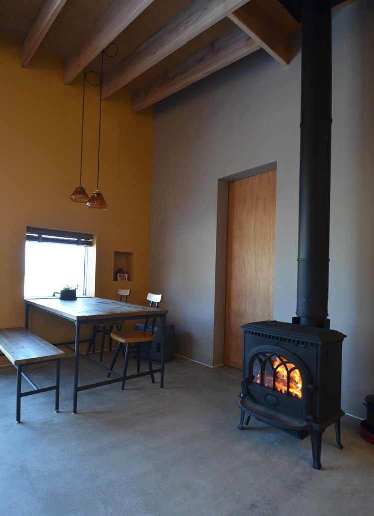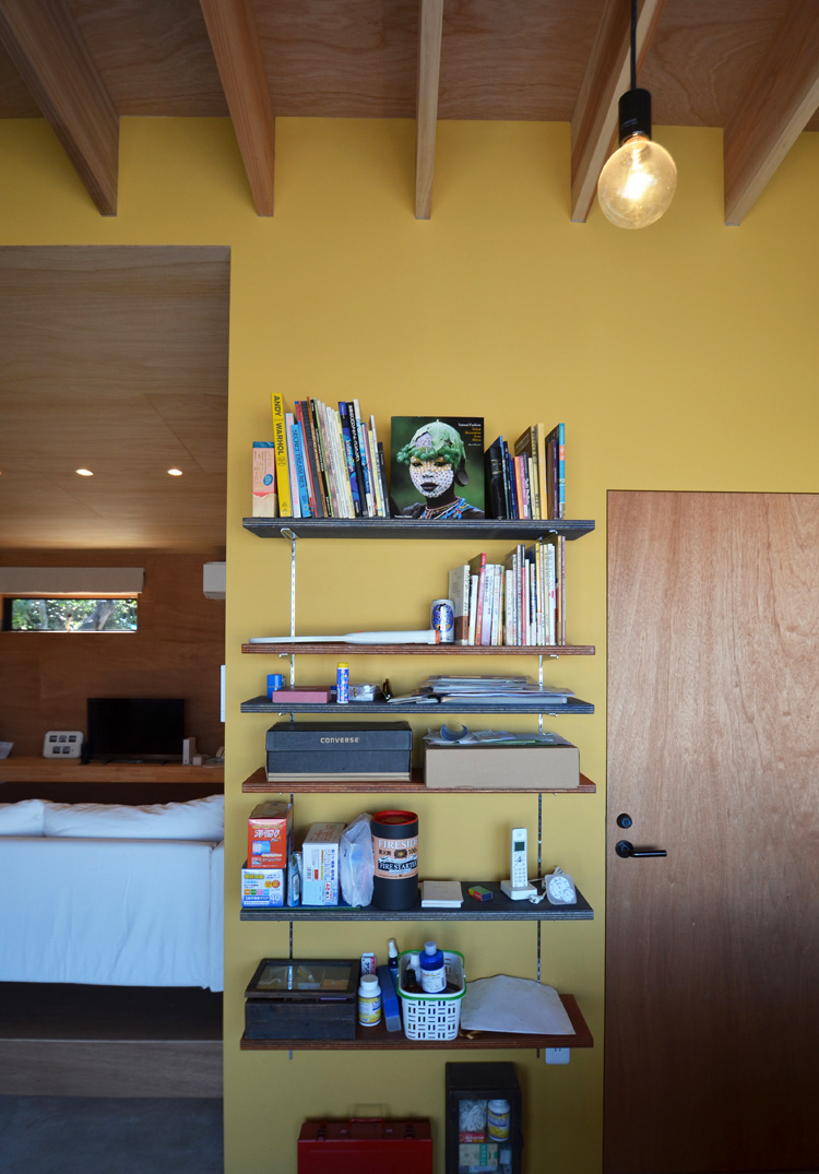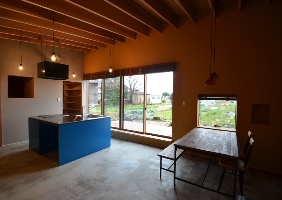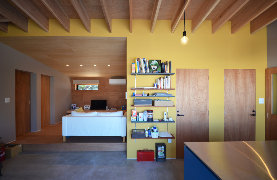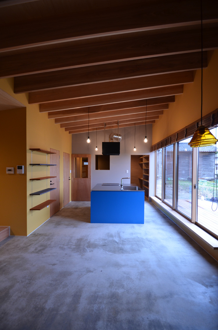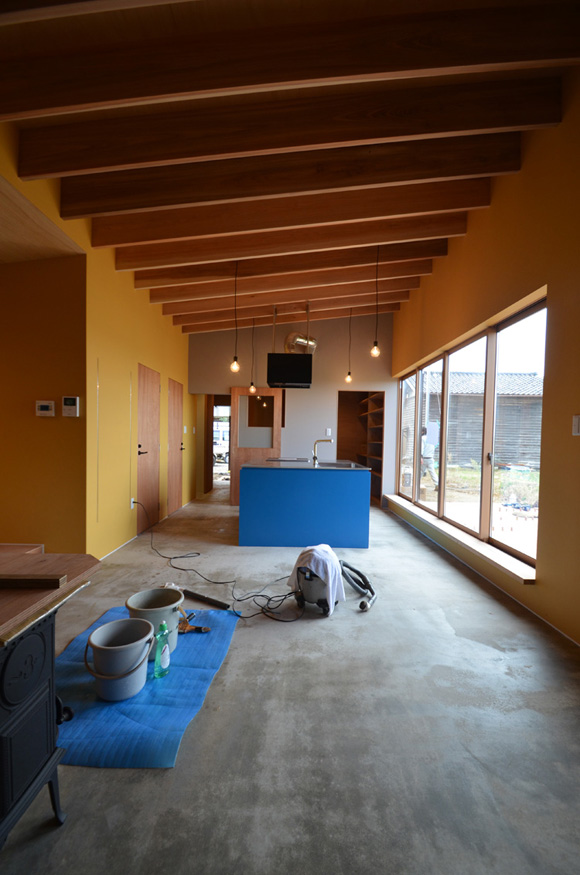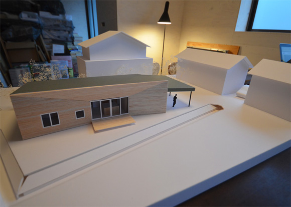 ![]() 中央にある窓に向かっての凹みは庇の役割。 凹みおかげで風雨や外壁の劣化を防いでくれる。 ![]() 外壁材は「周囲の環境に溶け込むように!」ということで深い緑色と板張りでつくりました。 北側に広がる田園風景は美しいだけでなく、たまーに畑の人からお野菜をいただけることもあるそうな。 ![]() 壁紙の色は全て奥さんチョイス。 LDKにはマスタードとグレーの壁紙を使ってみました。 ![]() クライアント希望の正方形アイランドキッチンはオリジナルで製作。色は奥さんチョイス。 天井はボードを張らずにあらわしの仕上げとした。 ![]() ダイニング横の窓はクライアントの強い希望。 全体が暖かくなるように家の中心に薪ストーブを配置。 ![]() 薪ストーブはヨツールのF3。 不燃で灰の掃除もしやすいように床は土間コンクリート仕上げとした。 薪割りは大変だけど子供たちと楽しくやってくれているそうだ。 ![]() 本棚と開戸はラワンべニアで製作。味があっていい感じ。 ![]() ![]() キッチンの脇に冷蔵庫や電化製品などを隠せるパントリーをつくった。 ![]() ご夫婦の寝室。天井の高さを利用して本棚を設けた。 ![]() 小学校一年生のおにいちゃんの部屋。壁紙はお兄ちゃんチョイス。 ![]() コロコロが好きみたいだ。子供の時によく僕も読んでたよ。 ![]() ピーンク!の壁紙をチョイスした妹ちゃんの部屋。 ![]() スポンジボブと目玉のおやじがこの部屋にいます。 ![]() 学習デスク。勉強はほどほどにね! ![]() 朝日が入ってくる位置に寝室を設けました。 屋根勾配なりに天井を張っているので勾配天井となっている。 ![]() デザインのお仕事をされている奥さんの仕事場。かっこいいね。 〜ここからは引き渡し時の写真〜 ![]() 簡素な素材を使うことでローコスト化を実現。 ![]() 4m幅の大開口を設けました。外には田園風景が広がる。 ![]() クライアントがネットで購入したテーブルとイス。ステキすぎる。 照明は奥さんチョイス ![]() 青いキッチンは設計人生で初じゃないかな。奥さんチョイス。 ![]() ドアの黒いハンドルはご主人チョイス。 ![]() 今まで撮りためた写真をクライアントにプレゼント。喜んでもらえたかな。 ![]() 3台の車を止めれます。パパ用とママ用。あとは僕用かな?優しいクライアントです。 ![]() デッキからの景色 ![]() 正面は板張り。クライアントのアイデア。 ![]() ガレージ ![]() 洗面所はグリーンだぜ ![]() 洗面所からサンルームを見る ![]() サンルーム ![]() LIXIL製のユニットバス ![]() ウォークインクローゼット ![]() 和室がなんだか哲学的。まぐれなんだけどとても素敵です。 計画概要 名称:T日 計画内容:新築住宅 計画地:石川県白山市 構造:木造住宅平屋建て 敷地面積:396.40u(119.91坪) 延床面積:126.08u(38.13坪) 設計期間:2014.10〜2015.5 工事期間:2015.6〜2015.12 撮影:稲森予人 〜ここからは施工中の写真〜 ![]() 2015.12.16 夜の現場にて照度チェック。明るさまったく問題なーし。 今日は役所の完了検査も無事に終えたのでホッとしたよ。 ![]() 2015.12.15 清掃中 照明点灯しました。美しいあかりです。 ![]() 外部のデッキ工事中。棟梁最後の工事です。ふぁいとー。 ![]() 2015.12.11 外部足場撤去 引き渡しまであと一週間。 ![]() 内部仕上げ工事 マスタード色の壁紙。外国みたいだね。 ![]() 2015.12.10 外壁塗装中 やっと会えたなT日さん! 会いたかったぜ! ![]() アイランドキッチン青色だよーん ![]() 中は黄緑色だよーん ![]() 2015.12.06 外壁板張り工事中 いい色だ!奥さんナイスチョイス! ほんでもって黒サッシとミドリ色の板金もいい感じで合ってるし! しかも畑の大根もおいしそうだし! ![]() 2015.11.25 完成まで残り一カ月 この家の光はとても美しいです。 ![]() 2015.11.21 内部ボード張り工事 ![]() 2015.11.4 外壁工事 ![]() 断熱材到着 ![]() 現場監督の女子力高いです。 ![]() 2015.10.18 防水シート張ったら建物のカタチが見えてきたよ。うひ。 ![]() 天井はこのまま構造体むき出しの無塗装でいきます。 監督さんキレイなべニア仕入れてくれてありがとう。 ![]() 窓の外の景色がステキです。全盛期の広末涼子くらいステキです。 ![]() 男前な家になりそうです。全盛期の窪塚洋介くらい男前になりそうです。 ![]() 屋根板金工事。緑色だよー。 ![]() 2015.10.17 サッシ工事 外は黒色、中は木目調のサッシを使います。 ![]() 大工さんが日が暮れてもがんばってくれています。感謝だね。 ![]() 防水工事。煙突あるよ。 ![]() 2015.10.10 祝・上棟 上棟式ほったらかして鬼ごっこ。 子供たちに「稲森さん鬼下手だし鬼係やってあげる」って気を使われたよ。 ![]() ![]() 2015.10.9 土台敷き+足場組立 明日上棟します!! ![]() T日と書いて「ティーエイト」と言います。奥さんがプロジェクトの名付け親です。 ![]() 2015.10.1 きたない靴で入らないで。現場監督の丁寧な仕事に感謝。 ![]() 2015.9.29 基礎工事完了 芸能人は歯が命。T日は基礎コンクリートが命。 ![]() 2015.9.26 外壁板張り 監督さんが選びやすいように板張りの塗装サンプルを立て掛けてくれています。 一番上のがよい気がしてきま