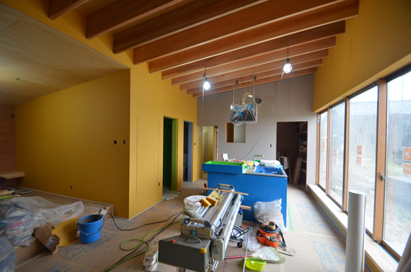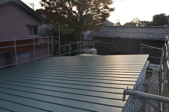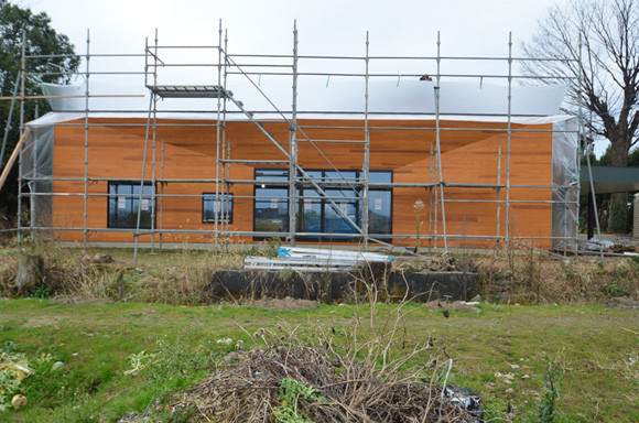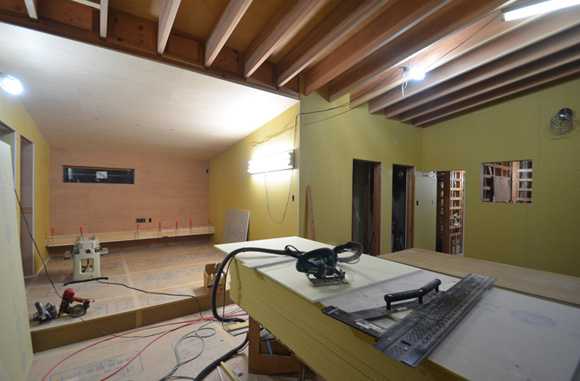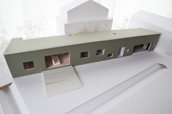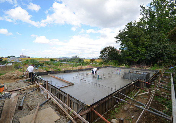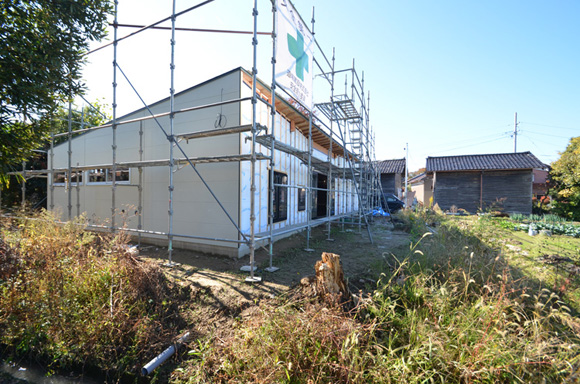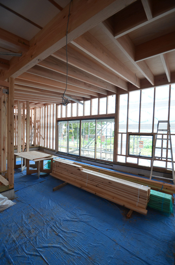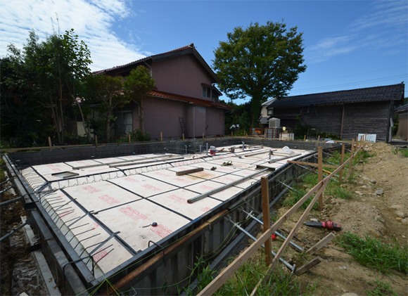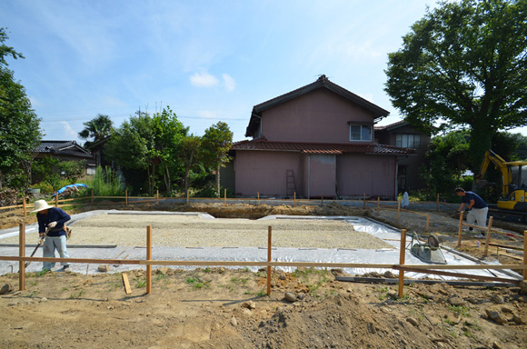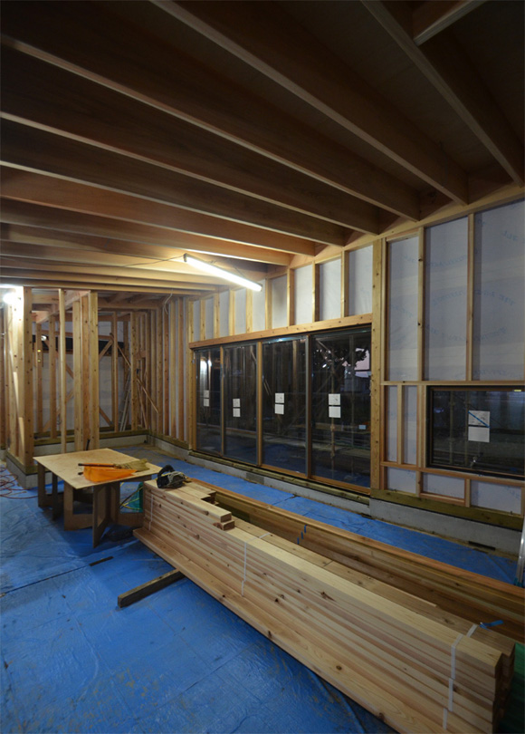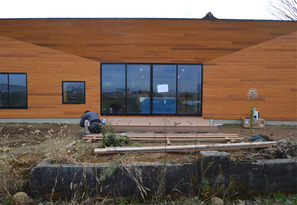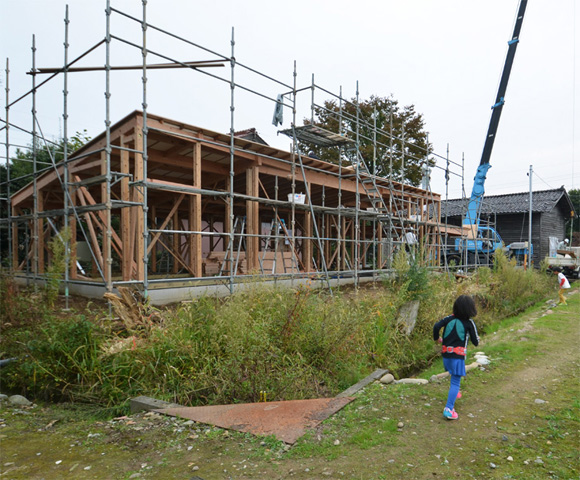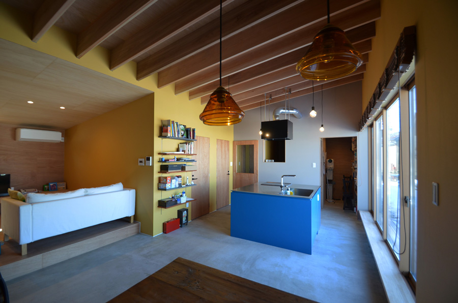 ![]() 中央にある窓に向かっての凹みは庇の役割。 凹みおかげで風雨や外壁の劣化を防いでくれる。 ![]() 外壁材は「周囲の環境に溶け込むように!」ということで深い緑色と板張りでつくりました。 北側に広がる田園風景は美しいだけでなく、たまーに畑の人からお野菜をいただけることもあるそうな。 ![]() 壁紙の色は全て奥さんチョイス。 LDKにはマスタードとグレーの壁紙を使ってみました。 ![]() クライアント希望の正方形アイランドキッチンはオリジナルで製作。色は奥さんチョイス。 天井はボードを張らずにあらわしの仕上げとした。 ![]() ダイニング横の窓はクライアントの強い希望。 全体が暖かくなるように家の中心に薪ストーブを配置。 ![]() 薪ストーブはヨツールのF3。 不燃で灰の掃除もしやすいように床は土間コンクリート仕上げとした。 薪割りは大変だけど子供たちと楽しくやってくれているそうだ。 ![]() 本棚と開戸はラワンべニアで製作。味があっていい感じ。 ![]() ![]() キッチンの脇に冷蔵庫や電化製品などを隠せるパントリーをつくった。 ![]() ご夫婦の寝室。天井の高さを利用して本棚を設けた。 ![]() 小学校一年生のおにいちゃんの部屋。壁紙はお兄ちゃんチョイス。 ![]() コロコロが好きみたいだ。子供の時によく僕も読んでたよ。 ![]() ピーンク!の壁紙をチョイスした妹ちゃんの部屋。 ![]() スポンジボブと目玉のおやじがこの部屋にいます。 ![]() 学習デスク。勉強はほどほどにね! ![]() 朝日が入ってくる位置に寝室を設けました。 屋根勾配なりに天井を張っているので勾配天井となっている。 ![]() デザインのお仕事をされている奥さんの仕事場。かっこいいね。 〜ここからは引き渡し時の写真〜 ![]() 簡素な素材を使うことでローコスト化を実現。 ![]() 4m幅の大開口を設けました。外には田園風景が広がる。 ![]() クライアントがネットで購入したテーブルとイス。ステキすぎる。 照明は奥さんチョイス ![]() 青いキッチンは設計人生で初じゃないかな。奥さんチョイス。 ![]() ドアの黒いハンドルはご主人チョイス。 ![]() 今まで撮りためた写真をクライアントにプレゼント。喜んでもらえたかな。 ![]() 3台の車を止めれます。パパ用とママ用。あとは僕用かな?優しいクライアントです。 ![]() デッキからの景色 ![]() 正面は板張り。クライアントのアイデア。 ![]() ガレージ ![]() 洗面所はグリーンだぜ ![]() 洗面所からサンルームを見る ![]() サンルーム ![]() LIXIL製のユニットバス ![]() ウォークインクローゼット ![]() 和室がなんだか哲学的。まぐれなんだけどとても素敵です。 計画概要 名称:T日 計画内容:新築住宅 計画地:石川県白山市 構造:木造住宅平屋建て 敷地面積:396.40u(119.91坪) 延床面積:126.08u(38.13坪) 設計期間:2014.10〜2015.5 工事期間:2015.6〜2015.12 撮影:稲森予人 〜ここからは施工中の写真〜 ![]() 2015.12.16 夜の現場にて照度チェック。明るさまったく問題なーし。 今日は役所の完了検査も無事に終えたのでホッとしたよ。 ![]() 2015.12.15 清掃中 照明点灯しました。美しいあかりです。 ![]() 外部のデッキ工事中。棟梁最後の工事です。ふぁいとー。 ![]() 2015.12.11 外部足場撤去 引き渡しまであと一週間。 ![]() 内部仕上げ工事 マスタード色の壁紙。外国みたいだね。 ![]() 2015.12.10 外壁塗装中 やっと会えたなT日さん! 会いたかったぜ! ![]() アイランドキッチン青色だよーん ![]() 中は黄緑色だよーん ![]() 2015.12.06 外壁板張り工事中 いい色だ!奥さんナイスチョイス! ほんでもって黒サッシとミドリ色の板金もいい感じで合ってるし! しかも畑の大根もおいしそうだし! ![]() 2015.11.25 完成まで残り一カ月 この家の光はとても美しいです。 ![]() 2015.11.21 内部ボード張り工事 ![]() 2015.11.4 外壁工事 ![]() 断熱材到着 ![]() 現場監督の女子力高いです。 ![]() 2015.10.18 防水シート張ったら建物のカタチが見えてきたよ。うひ。 ![]() 天井はこのまま構造体むき出しの無塗装でいきます。 監督さんキレイなべニア仕入れてくれてありがとう。 ![]() 窓の外の景色がステキです。全盛期の広末涼子くらいステキです。 ![]() 男前な家になりそうです。全盛期の窪塚洋介くらい男前になりそうです。 ![]() 屋根板金工事。緑色だよー。 ![]() 2015.10.17 サッシ工事 外は黒色、中は木目調のサッシを使います。 ![]() 大工さんが日が暮れてもがんばってくれています。感謝だね。 ![]() 防水工事。煙突あるよ。 ![]() 2015.10.10 祝・上棟 上棟式ほったらかして鬼ごっこ。 子供たちに「稲森さん鬼下手だし鬼係やってあげる」って気を使われたよ。 ![]() ![]() 2015.10.9 土台敷き+足場組立 明日上棟します!! ![]() T日と書いて「ティーエイト」と言います。奥さんがプロジェクトの名付け親です。 ![]() 2015.10.1 きたない靴で入らないで。現場監督の丁寧な仕事に感謝。 ![]() 2015.9.29 基礎工事完了 芸能人は歯が命。T日は基礎コンクリートが命。 ![]() 2015.9.26 外壁板張り 監督さんが選びやすいように板張りの塗装サンプルを立て掛けてくれています。 一番上のがよい気がしてきま