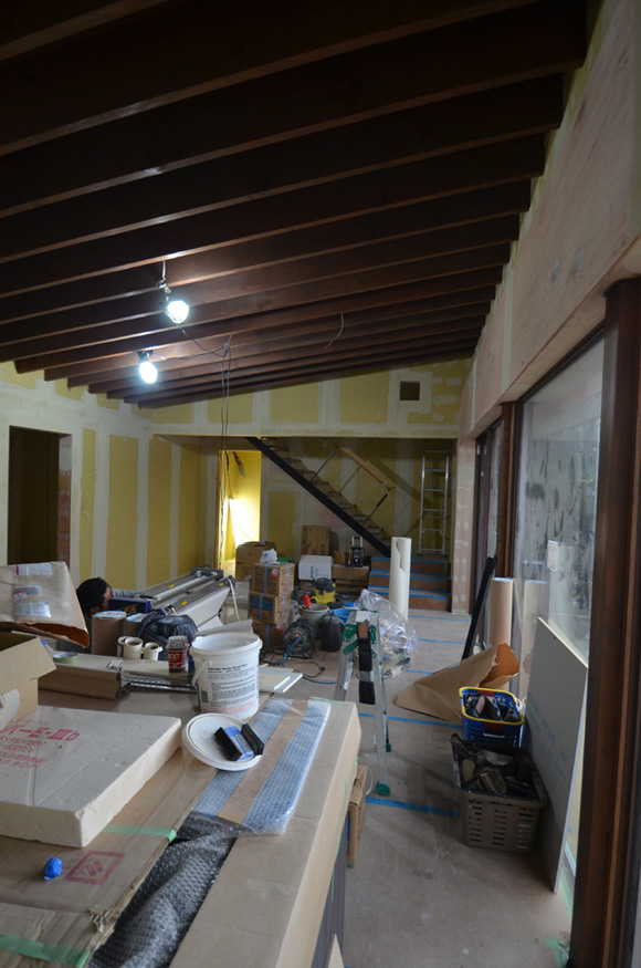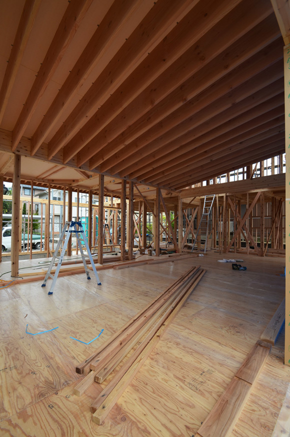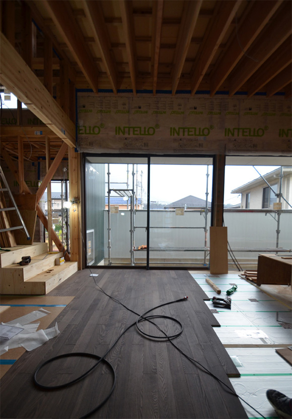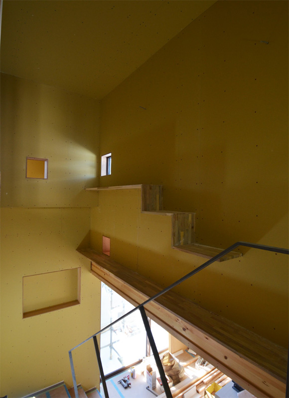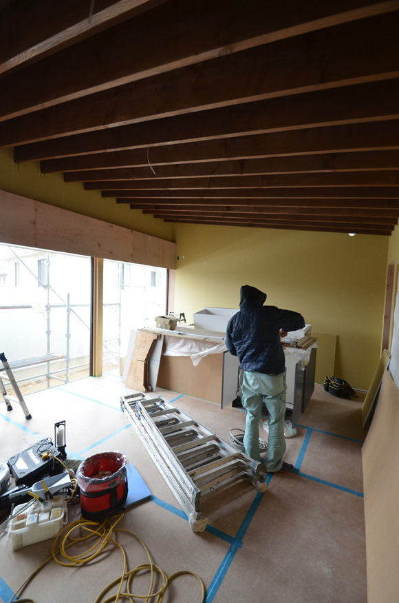 ![]() 2016.2.28 完成 ![]() ![]() ![]() オリジナルキッチン クライアントの強い希望で天板は高級人造大理石フィオレストーンジュエルブラックを使っています。 ![]() 鉄骨階段 ![]() ネコちゃんが遊べるようにいくつかの工夫をしています。 喜んでもらえるかな。 ![]() 本棚 クライアントの好きな漫画が並ぶ予定。 ![]() 夫婦寝室 ![]() 子供部屋です。将来的にロフトを作るために天井を高くしています。 ![]() 洗面所 ![]() サンルーム ![]() 家の裏側 ![]() 〜ここからは施工中の写真〜 ![]() 2016.2.20 二階の床塗装のお手伝いをしてきました。いい感じの色になったよー。 ![]() 玄関 大きなニッチには写真を飾る予定。 ![]() ![]() 2016.2.9 パテ処理して内部仕上げ工事中。 ![]() 2016.2.2 木部をチョコレート色に塗装工事中。 ![]() 太陽光パネルを屋根に上げています。 ![]() 2016.1.30 大工工事も今週で終わる。これから仕上げ工事が進んでいきます。 ![]() コートの外壁張り ![]() 壁面埋め込みの本棚 工事期間中は大工さんの工具置き場さ。 ![]() 2016.1.26 階段上部の吹き抜けを利用してキャットウォークを作りました。 ネコ用窓とのぞき穴もあるよ。 ![]() 外壁サイディング張り ![]() 2016.1.22 寝室のボード張り 奥に見えるのがご主人のこもりスペース。 ![]() 2016.1.5 下地工事中 新年から大工さんが二人体制で進んでいるようで、かなり家らしくなってきました。 壁のボード張ったらよりリビング天井の美しさがわかってもらえるはず。お楽しみにー。 ![]() 2015.12.16 フローリング張り 奥さんナイスチョイス!いい感じのフローリングだ。 ![]() 2015.11.25 クライアントの強い希望で断熱にもこだわっています。 壁で見えなくなっちゃうのがもったいないくらい。 ![]() 2015.11.7 床暖房敷き込み中 ![]() 2015.10.28 7mの大開口サッシにガラスが入りました。高性能ハイブリッド窓サーモスXです。 ![]() 2015.10.23 お風呂到着したよー。 ![]() 2015.10.7 クライアントとキッチンフェアデート。 二度見してしまうほどの大きい食洗機。でかすぎる。。。 ![]() 2015.9.19 屋根板金工事 奥さんチョイスで緑と白だよーん。 周囲の家の屋根と見比べても全然意味合いの違う不思議な家だってのがよくわかるね。 ![]() 2015.9.16 大工工事 ![]() 屋根防水工事 ![]() ![]() 2015.9.14 上棟 昨日、上棟式を終えて再び静かになった現場へ行ってきました。 リビングの大開口と天井の構造体がステキすぎる。ぷぷぷ。 ![]() 2015.9.11 土台敷き 素晴らしい仕事してくれそうな大工さんに挨拶をしてきた。ケガをしないようにがんばっていただきたい。 ![]() 2015.9.8 13日上棟まであと数日しかないけど台風が来ている。土台敷き間に合うのかな? ![]() 2015.9.7 給排水配管工事中 ![]() 2015.9.5 自分で言うのもなんだけど、建物の配置かなりいい感じ。大工さんが入るのはいつかな。 ![]() 2015.8.31 脱型 ![]() 2015.8.28 この家には玄関前にコートがある。 まわりが壁に囲まれた空しか見えないような簡素なコートにしちゃったらステキじゃないかな。 クライアントに提案してみよっと。 ![]() 2015.8.27 基礎立ち上がり型枠施工中 ![]() 2015.8.26 基礎工事 24歳の頃に固まってない生コンに足をつっこんで左官屋さんに迷惑をかけたことがあります。 ![]() 2015.8.25 続・配筋工事 来週はクライアントとカーテン屋ぶらりデートの予定。 ![]() 2015.8.20 基礎型枠 週末に外壁とサッシの色を決める予定です。 ![]() 2015.8.12 すき取り ![]() 2015.8.1 手のひらサイズ1/200モデル ![]() 2015.7.4 地鎮祭 たくさんの人が集まっての地鎮祭なのにちょっとしか参加できなかった(T-T)がびーん ![]() 2015.5.18 実施設計中 これが僕の「仕事」です。 ![]() ![]() ![]() ![]() 太陽光をのせる予定です ![]() ![]() ![]() ![]() ![]() ![]() ![]() ![]() 2014.10.3 土地調査 |