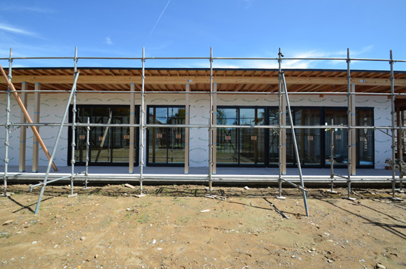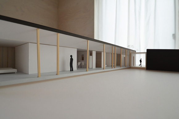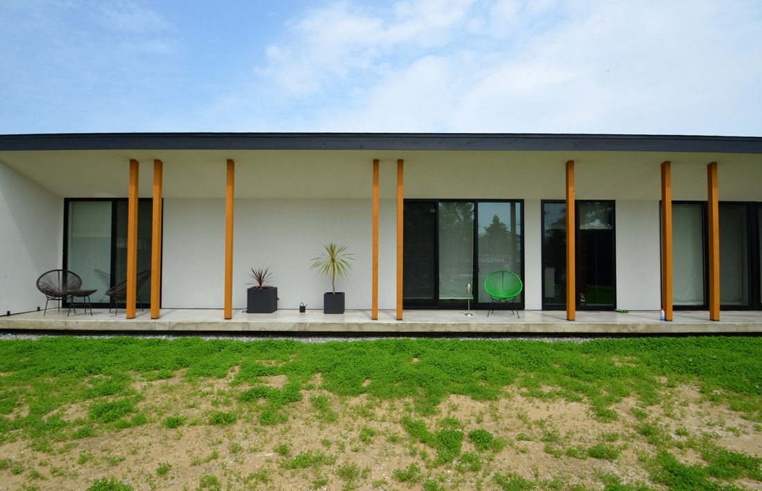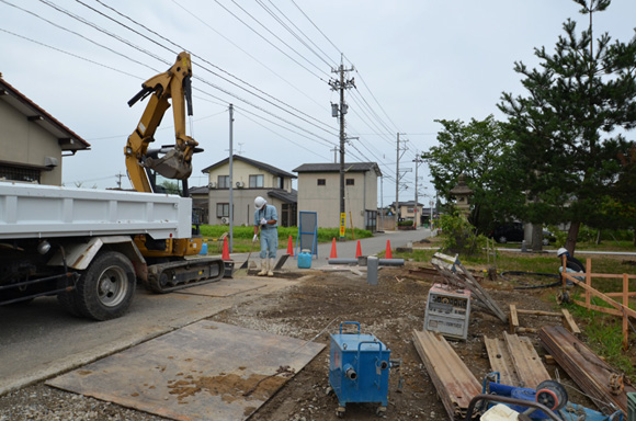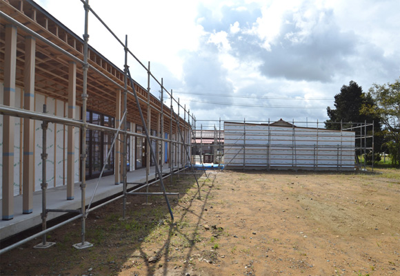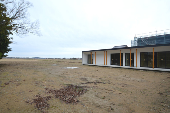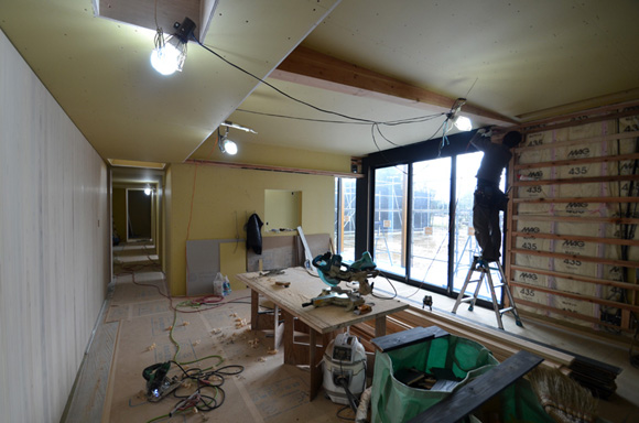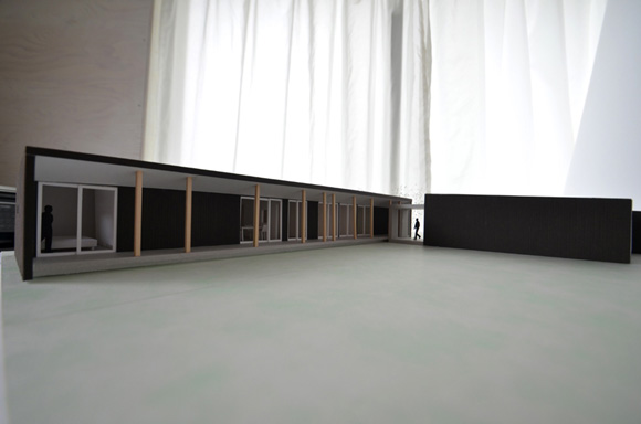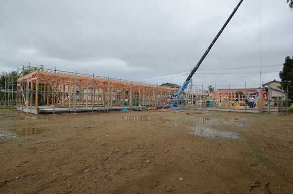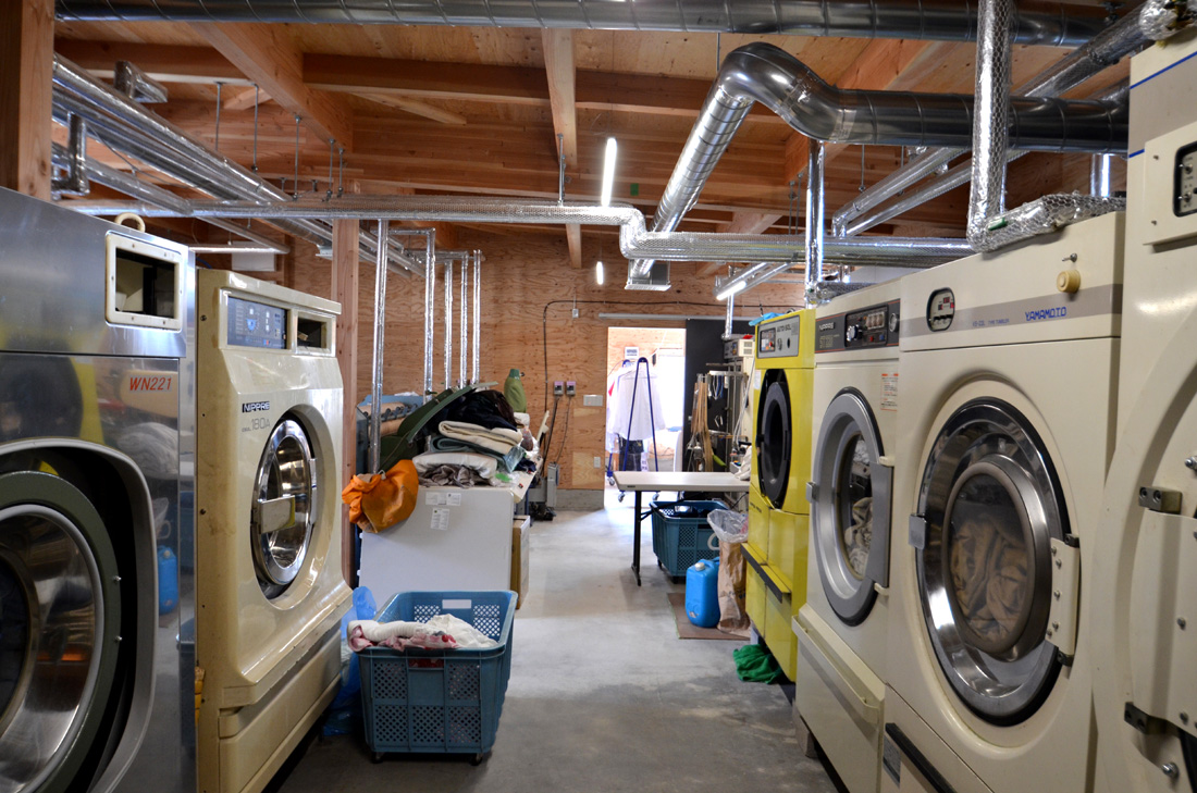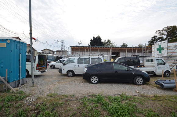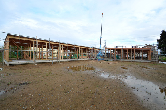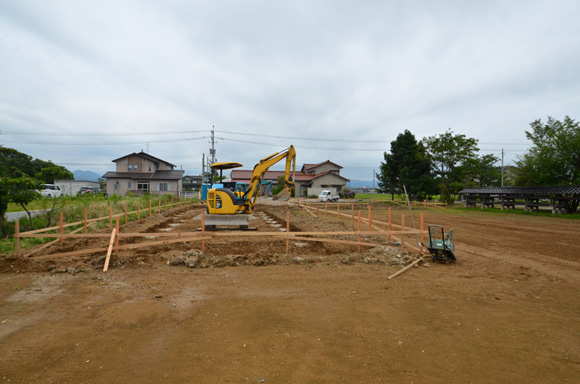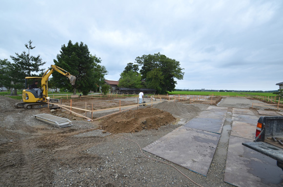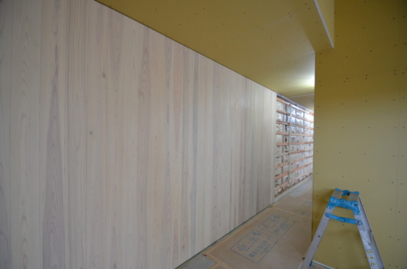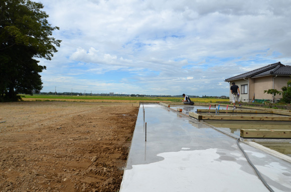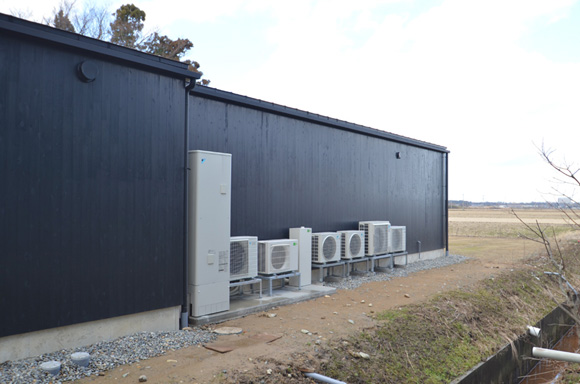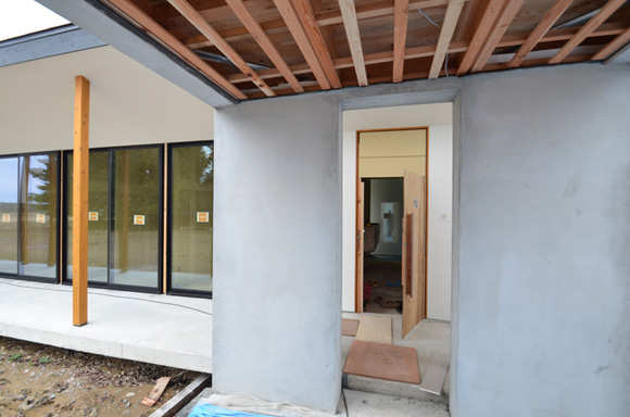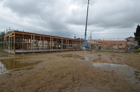 ![]() 2022.5.30 完成して五年三カ月後 ふらりとお邪魔させていただきオーナーさんと世間話m(- -)m いつもありがとうございます。 外壁がマットな焼杉のように経年変化してきました。 完成時のピカピカも好きだけど味が出る素材も好きだなー。 ![]() ![]() 2018.5.13 完成して一年半後 素敵な庭になっていました。別世界みたい。 ![]() 庭の真ん中にあるのはハンモックだよ。 ![]() 2017.6.28 夏の5454はこんな感じです。ほんと気持ちいい。 ![]() 春先に植えたマイクロクローバーが成長しました。 ![]() テラスの奥行は1.7mで軒の深さは2.0mです。 リゾート気分を味わいたいというご主人の希望を叶えるテラス。 ![]() ![]() 左にあるのが住宅棟、右にあるのがクリーニングの店舗棟。 ![]() 奥の田んぼと繋がりを感じられる裏庭。 ![]() 住宅と店舗(仕事場)を繋ぐ渡り廊下(トンネル)から裏庭を見る。 ![]() 店舗棟のテラスからトンネルを通して住宅棟のテラスを見る。 黒い外壁に合うモミジを植えてみました。 ![]() ![]() 2017.5.25 引き渡してから3カ月後 夕暮れ時の写真を撮らせていただきました。 完成後も照明、植栽、看板など住み手のこだわりが加わり、どんどんパワーアップしていく5454さんです。 ![]() ![]() ライトアップ!!日本じゃないみたいだね。 ![]() 土間仕上げのシンプルな玄関。 オリジナルでつくった横長の下駄箱。 ![]() 洗面、浴室、バスコートを見る。 仕切りはガラス戸なのでとても広く感じる。 浴槽、シャワー、水栓等はご主人がこだわってネット購入されたもの。 ![]() シナ合板と和紙クロスで仕上げたお母さんの和室。 左に見えるのがシナ合板でオリジナルでつくったテレビボード。右は仏壇を置くスペース。 ![]() 20帖のリビングダイニング。 テレビ上部には埋め込みのスクリーンボックスを設けている。 ソファの横に木魚?と思われた方もいるでしょうが実は植木鉢らしいよ! ![]() ダイニングから隣の神社を見る。 6人掛けのテーブルと照明器具はゴールデンベル×3。 ![]() トーヨーキッチンとサンワカンパニーのレンジフード。 リビングとキッチンは分けてほしいというリクエストでした。 ![]() ご夫婦の寝室。壁の凹みは壁掛けのテレビが入ります。 ![]() 合板サンドイッチ仕上げの子供部屋。 二段ベットって子供の頃あこがれたなー。 ![]() 床は荒々しい表情の土間コンクリート仕上げ。 部分的に床暖房が仕込まれている。 右手の壁は杉板張りオスモ塗装。 ![]() 壁と同材でクローゼットをつくった。 長さは6.6mで家族全員分の収納となっている。 ![]() 玄関に柔らかい光が入ってきます。 ![]() 玄関から渡り廊下(トンネル)を見る。 ![]() クリーニングの作業場には乾燥機や洗濯機などの機械が並ぶ。 蒸気の配管とストイックな仕上げがなんだかいい感じ。 ![]() アイロン台の作業風景を外の人に見てもらいたいということで窓を設けている。 ![]() 仕上がったものをストックしておく棚。 計画概要 名称:5454 計画内容:店舗(クリーニング屋)併用住宅 計画地:石川県加賀市 構造:木造平屋建て 敷地面積:1346.90u(407.43坪) 延床面積:276.33u(83.58坪) 建築面積:361.32u(109.29坪) 設計期間:2015.10〜2016.3 工事期間:2016.4〜2017.1 撮影:稲森予人 〜ここからは施工中の写真〜 ![]() モミジ、アオハダ、アオダモ、ダンコウバイ、マルバノキ、ナツハゼなどの10本の木をクライアント、監督、植栽屋さんと話し合いながら配置決め。 やっぱり木の力はすごいね。置いた途端に外観の重心がぐっと下がって家が地に着いた感じ。 これからクライアントが徐々に下草を植えていかれるとのことなんだけどより楽しみだ。 植栽計画悩んでよかったー。 ![]() クリーニング機器の排気口が黒の外壁に合うね。 ![]() エアコン室外機、エコキュート、床暖房のヒートポンプなどをまとめて配置。 家の裏側だけどかっこつけてみました。 ![]() クリーニング設備機器搬入中 ![]() ![]() ![]() ![]() ![]() ![]() ![]() 寒い。。。 ![]() クリーニング作業場はもう一息。 ![]() クライアントと監督と一緒に照明の設置高さなどを現場で確認しました。 寒い中ありがとうございました。 これから設備機器と建具と照明器具などなど色々入ってきて嬉しいことの連続です。現場が楽しみだ。 ![]() クロス張り工事も終わりました。ここのお家はすごく明るいです。 このプロジェクトもあとちょっとで終わっちゃうんだなぁ。。。寂しくなるなぁ。 ![]() 作業場の観音開き扉は木製のかんぬき錠を使っています。 昔ながらの施錠方法がなんだかとてもステキです。建具屋さん監督さんありがとう。 ![]() 僕がこの家の子なら朝から晩までここでサッカーかバスケするだろうなー。 ![]() トンネルはトンネルらしくモルタル塗り仕上げ。 ![]() 足場がバラされましたー。 ![]() 大工さんががんばっていた板張りの出隅部分45度トメ加工が美しい。すごすぎ。 ![]() 大工さんがイナバウアー状態になるまで板張りがんばってくれています。感謝感謝。 もうこのプロジェクトも大工さんとはお別れだ。挨拶をしっかりしなければ。 ![]