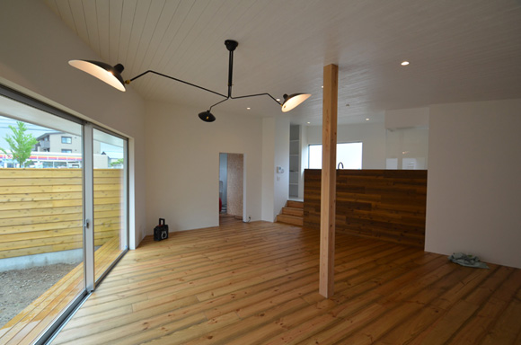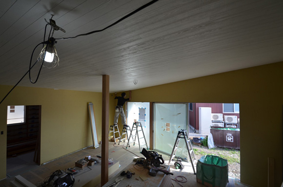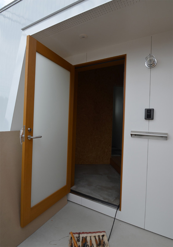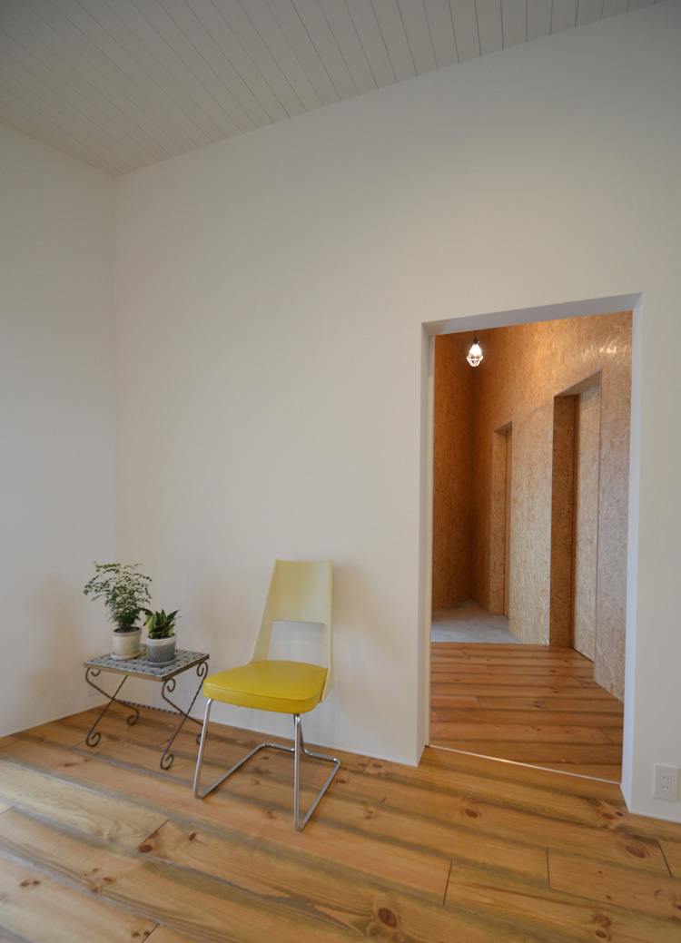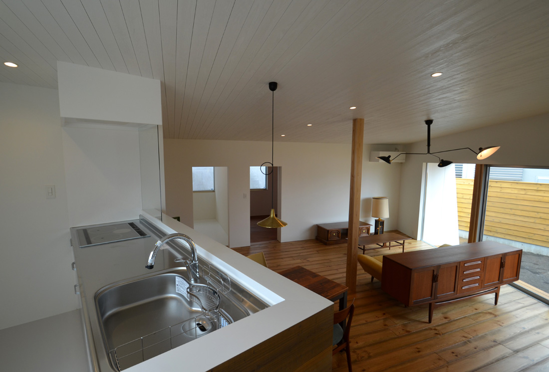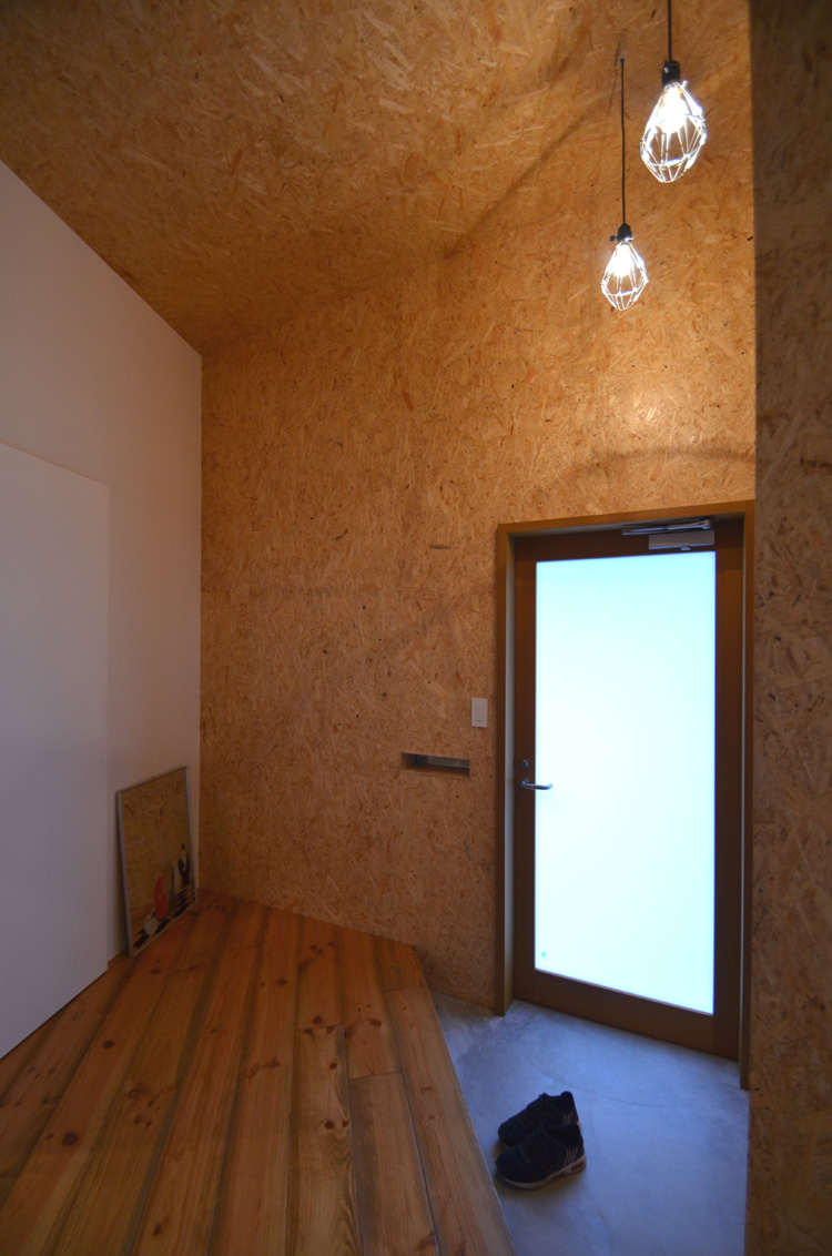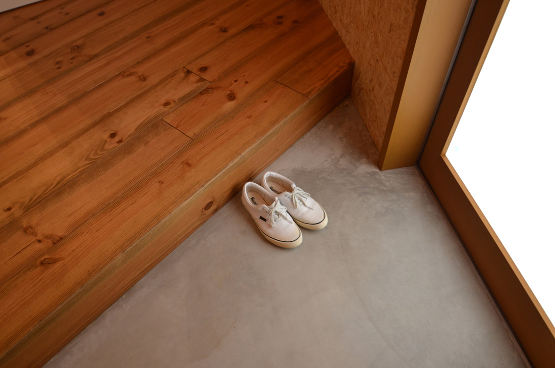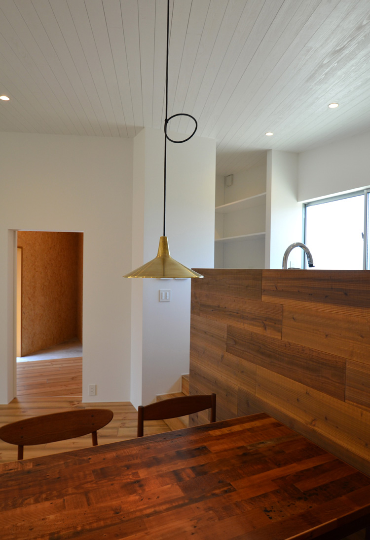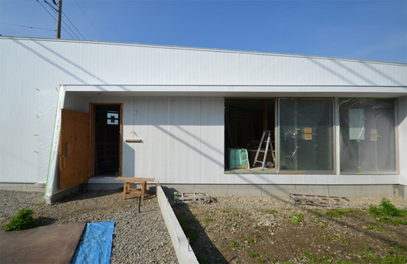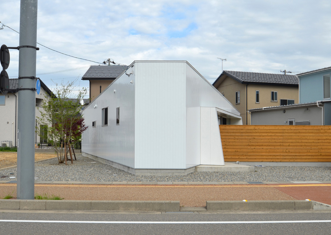 ![]() 2022.7.3 完成して丸七年 表札を付けてほしいということでお邪魔してきましたー。 生活そのままに撮影もさせていただき感謝です。 美味しいスイカごちそうさまでした! ![]() ![]() ![]() ![]() 2016.7.1 完成 クライアントとはじめてお会いしてから二年二ヶ月の時間をかけてようやく引き渡しとなりました。 たくさんの人が一生懸命がんばったおかげでステキなお家となりました。 ![]() IDEEの照明かっちょいー。床のフローリングはパイン材をアンティーク加工したもの。 家具はすべてクライアントがこだわって購入されたものです。おしゃれー。 ![]() 大きな南の窓から採光が入ってきます。4.7mの大開口です。 南北に窓があるので風も通って気持ちいー。 ![]() 勾配天井を板張り白塗装にしてみました。 レンジフードはオリジナルで、キッチンは既製品を使っています。 ![]() 家の向かいにはコンビニが建ち、前面道路は交通量も多い。 騒音対策と西日防止のため窓は設けていない。 ![]() 白い外壁はクライアントの強い希望。 汚れ防止のため外壁はガルバリウム鋼板とした。 ![]() これからご主人が芝生を敷く予定の庭です。 板塀とデッキはKELUNとクライアントで塗装しました。とてもいい思い出です。 デッキは耐久性とコストパフォーマンスの高いセランカンバツ材を使用。 ![]() 板塀の高さは外から人に見られない高さに設定しました。 ![]() ![]() 真鍮の照明。クライアントチョイス。 ![]() ![]() クライアントの希望でキッチンの床レベルを上げました。床下に空間ができたのでキッチン下は床下収納となっています。 キッチンカウンター立ち上がりの壁は味のある足場板を張ってみました。シンクの手元が見えないようになっています ![]() ![]() クサそうな靴があるなと思ったら僕のでした。 ![]() 現場用の照明。一個千円だよん。 ![]() 引戸を壁材と同じOSB合板で作りました。 ![]() OSB合板と現場用の照明が合っています。マグレきたー。 ![]() 男子には羨ましい小便器付きトイレです。 ![]() 外部収納用の部屋。下足の棚は大工さんからクライアントへのプレゼント。 チームワーク力の強い現場でした。 ![]() 寝室はラワン合板を天井と床にサンドイッチ張りしました。心地よいスケール感の部屋です。 ![]() 天井についている怪しい黒い棒はご主人専用ぶら下がり棒さ。 ![]() 寝室脇の大容量ウォークインクローゼット。 ![]() まっしろ! ![]() 朝日が入ってくる側に寝室を設けました。 ![]() 洗面所の棚板はリビングのフローリングであまったものを使いました。ご主人のアイデア。 ![]() 洗面所からサンルームを見る。 ![]() 道路側は騒音対策と西日防止のため窓を設けずにできるだけ建物を絞り、 道路の反対側へは建物を広げて、寝室などの「静」の空間を配置。 外部騒音の影響が少なくなるように考えていくうちに三角の形をした建物に何となく導かれていった。 それから三角の斜め壁はリビングに採光を取り込めるように南へ向けて角度を設定し、1mの外壁後退や駐車スペース、庭、周辺環境を 考慮しながら配置や形状に微調整を加え、この「三角」の形が必然的にできあがった。 計画概要 名称:010 計画内容:新築住宅 計画地:石川県野々市市 構造:木造住宅平屋建て 敷地面積:288.79u(87.35坪) 延床面積:99.89u(30.21坪) 設計期間:2015.9〜2016.1 工事期間:2016.1〜2016.6 撮影:稲森予人 〜ここからは施工中の写真〜 ![]() 2016.6.23 明日からオープンハウスの準備しよっと。 ![]() 2016.6.22 建具工事 クライアントの要望で強化ガラスの扉としました。かなりいい。 ![]() 壁と同材のOSBで引戸作ってみました(笑) チャレンジして失敗することは少ないね。がんばってくれた建具屋さんと監督ありがとう。 ![]() 2016.6.19 完成まであと少し。終わるとさびしくなりますね。 ![]() デッキの塗装うまいなー。誰が塗ったんだろうなー。と思ったら僕が塗ったんでした。 ![]() リビングから三角形の庭を見る。ちょっと角度があるだけで世界が違って見える。 ![]() キッチン横のパントリー。冷蔵庫とか電子レンジとかはそっちに隠しちゃいます。 ![]() 2016.6.12 「6月か7月くらいの暑い日になると思いますけど、板塀は僕たちで塗りましょうよ!」と、軽いノリで設計中にクライアントへ相談した私。 そして昨日、自主塗装の日を迎えました。真夏日のような気温の中でご主人と私で9時からスタートし、終わったのは16時。 熱中症で倒れるんじゃないかと何度か思いましたが無事に塗装を終えることができました。結構いい感じでしょ。 今日も一日精一杯建築がんばりました。 ![]() 2016.6.10 建築は一人で作ることはできません。 ![]() クライアントの希望でJIMBOのスイッチプレートです。ステキでしょ。 ![]() 2016.6.9 クロス張り完了 やっぱりこのリリカラのクロスいいね。塗装のように見えて白がほんと美しい。 このクロスが廃盤になったらKELUNはとても困る。 ![]() 2016.6.8 夕暮れ時。なんだか嬉しそうに大工さんがデッキ工事中 大工さんも明日で大工工事を終える予定とのこと。素晴らしい