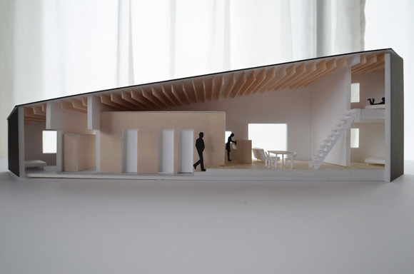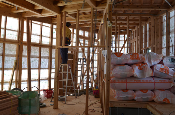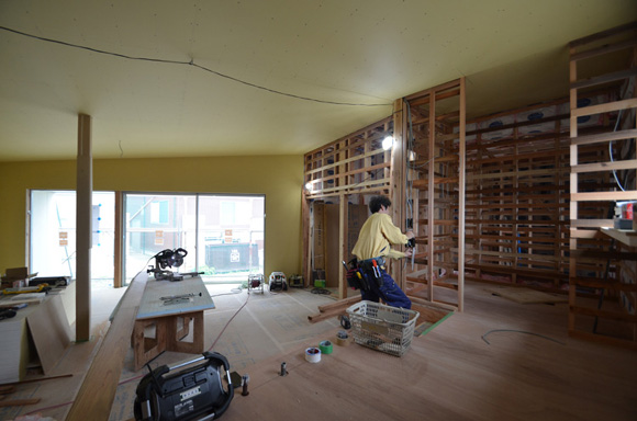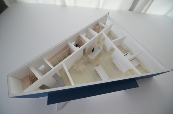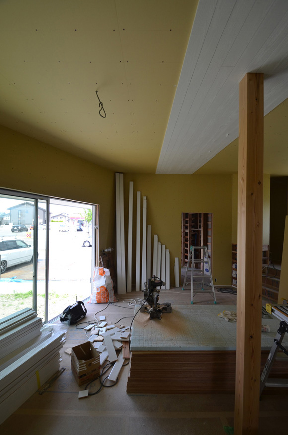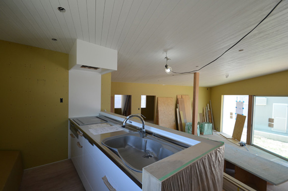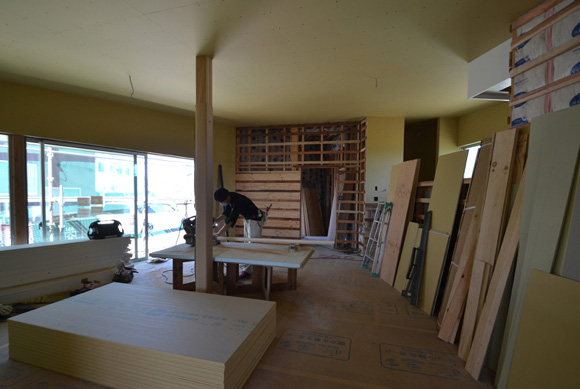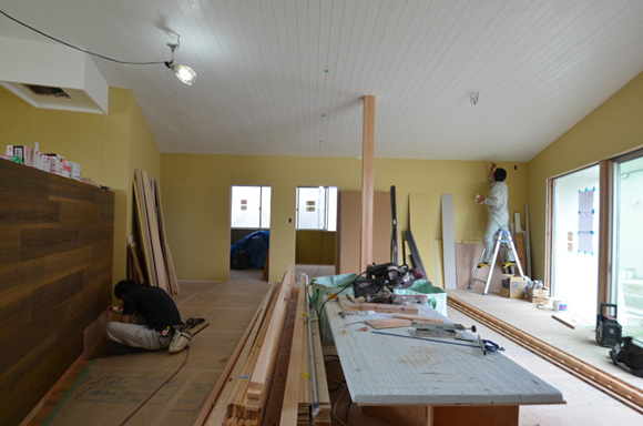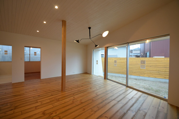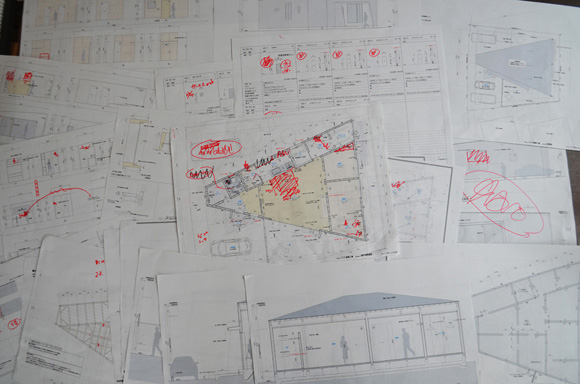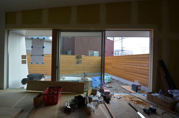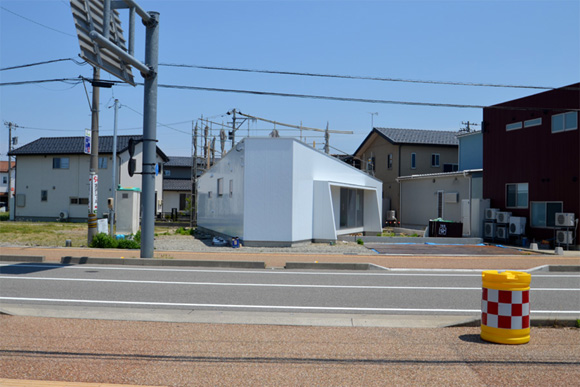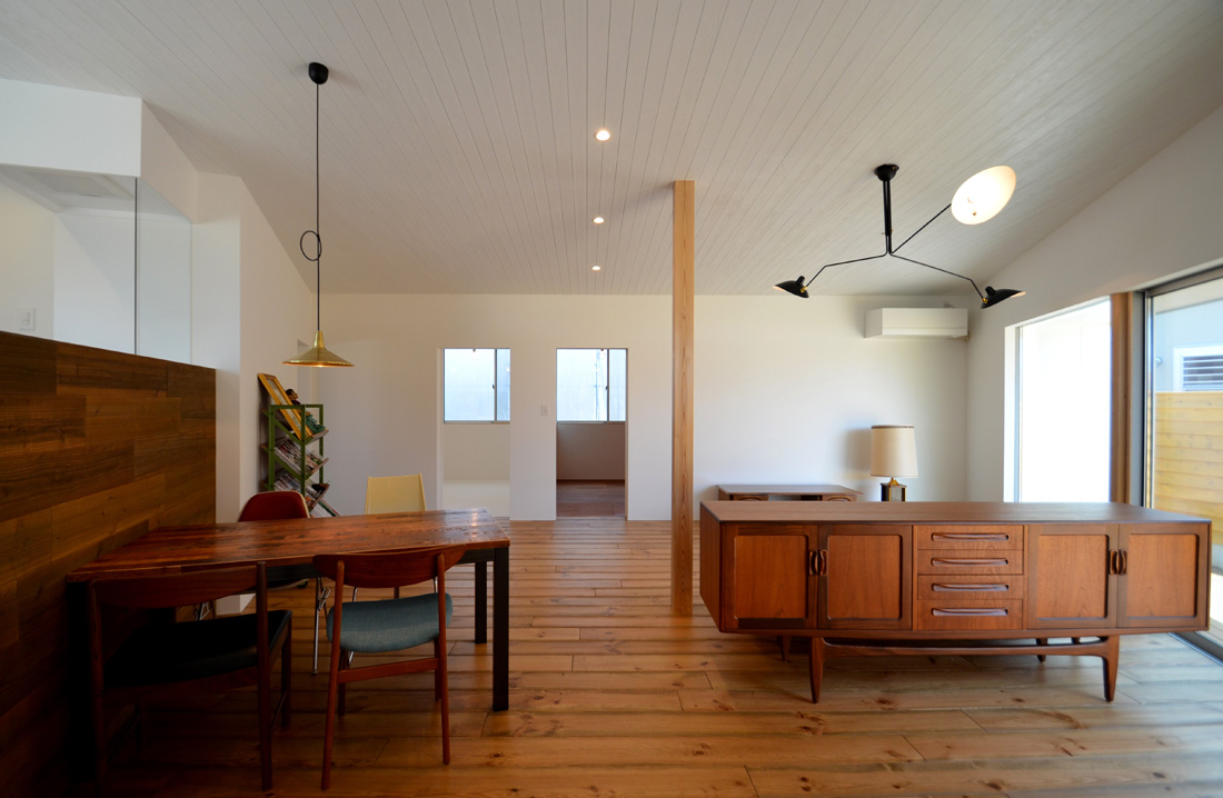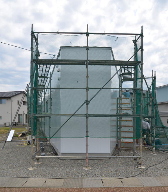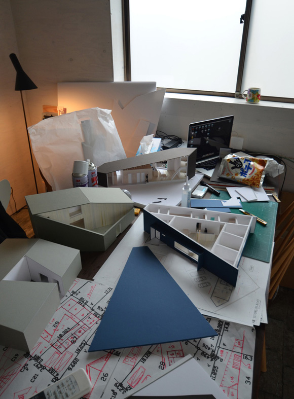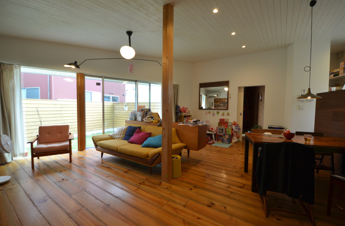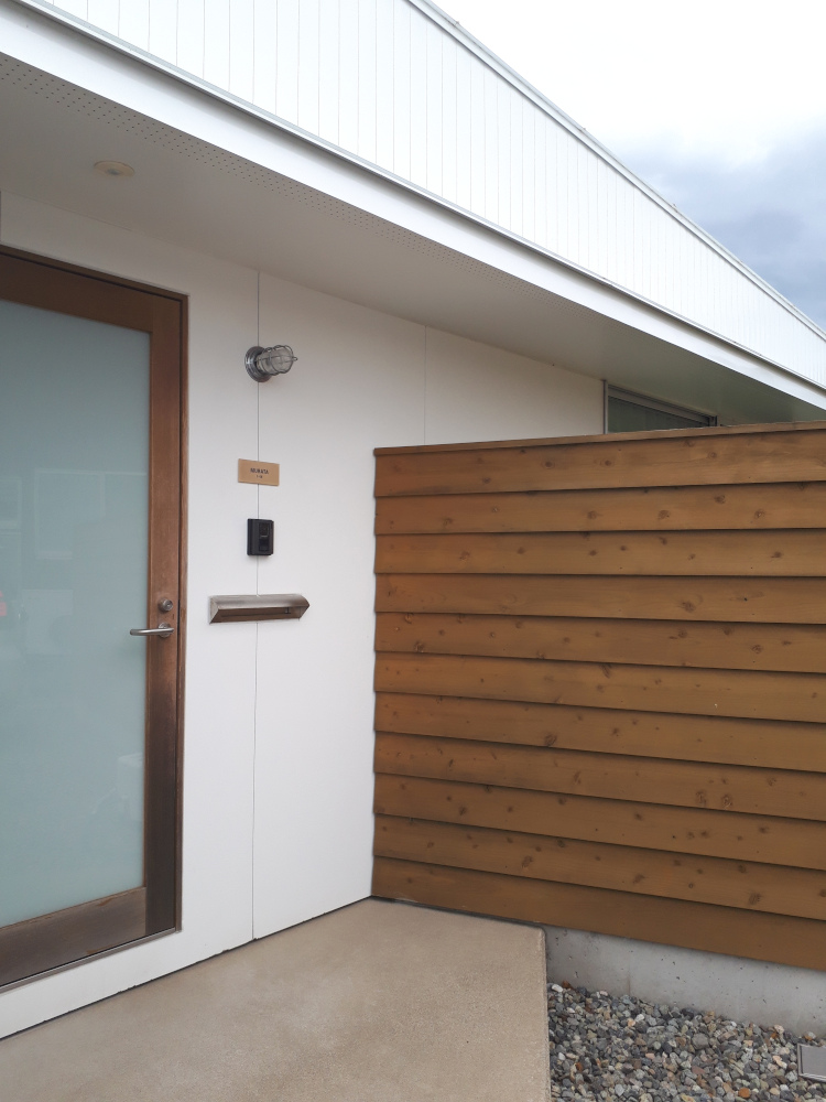 ![]() 2022.7.3 完成して丸七年 表札を付けてほしいということでお邪魔してきましたー。 生活そのままに撮影もさせていただき感謝です。 美味しいスイカごちそうさまでした! ![]() ![]() ![]() ![]() 2016.7.1 完成 クライアントとはじめてお会いしてから二年二ヶ月の時間をかけてようやく引き渡しとなりました。 たくさんの人が一生懸命がんばったおかげでステキなお家となりました。 ![]() IDEEの照明かっちょいー。床のフローリングはパイン材をアンティーク加工したもの。 家具はすべてクライアントがこだわって購入されたものです。おしゃれー。 ![]() 大きな南の窓から採光が入ってきます。4.7mの大開口です。 南北に窓があるので風も通って気持ちいー。 ![]() 勾配天井を板張り白塗装にしてみました。 レンジフードはオリジナルで、キッチンは既製品を使っています。 ![]() 家の向かいにはコンビニが建ち、前面道路は交通量も多い。 騒音対策と西日防止のため窓は設けていない。 ![]() 白い外壁はクライアントの強い希望。 汚れ防止のため外壁はガルバリウム鋼板とした。 ![]() これからご主人が芝生を敷く予定の庭です。 板塀とデッキはKELUNとクライアントで塗装しました。とてもいい思い出です。 デッキは耐久性とコストパフォーマンスの高いセランカンバツ材を使用。 ![]() 板塀の高さは外から人に見られない高さに設定しました。 ![]() ![]() 真鍮の照明。クライアントチョイス。 ![]() ![]() クライアントの希望でキッチンの床レベルを上げました。床下に空間ができたのでキッチン下は床下収納となっています。 キッチンカウンター立ち上がりの壁は味のある足場板を張ってみました。シンクの手元が見えないようになっています ![]() ![]() クサそうな靴があるなと思ったら僕のでした。 ![]() 現場用の照明。一個千円だよん。 ![]() 引戸を壁材と同じOSB合板で作りました。 ![]() OSB合板と現場用の照明が合っています。マグレきたー。 ![]() 男子には羨ましい小便器付きトイレです。 ![]() 外部収納用の部屋。下足の棚は大工さんからクライアントへのプレゼント。 チームワーク力の強い現場でした。 ![]() 寝室はラワン合板を天井と床にサンドイッチ張りしました。心地よいスケール感の部屋です。 ![]() 天井についている怪しい黒い棒はご主人専用ぶら下がり棒さ。 ![]() 寝室脇の大容量ウォークインクローゼット。 ![]() まっしろ! ![]() 朝日が入ってくる側に寝室を設けました。 ![]() 洗面所の棚板はリビングのフローリングであまったものを使いました。ご主人のアイデア。 ![]() 洗面所からサンルームを見る。 ![]() 道路側は騒音対策と西日防止のため窓を設けずにできるだけ建物を絞り、 道路の反対側へは建物を広げて、寝室などの「静」の空間を配置。 外部騒音の影響が少なくなるように考えていくうちに三角の形をした建物に何となく導かれていった。 それから三角の斜め壁はリビングに採光を取り込めるように南へ向けて角度を設定し、1mの外壁後退や駐車スペース、庭、周辺環境を 考慮しながら配置や形状に微調整を加え、この「三角」の形が必然的にできあがった。 計画概要 名称:010 計画内容:新築住宅 計画地:石川県野々市市 構造:木造住宅平屋建て 敷地面積:288.79u(87.35坪) 延床面積:99.89u(30.21坪) 設計期間:2015.9〜2016.1 工事期間:2016.1〜2016.6 撮影:稲森予人 〜ここからは施工中の写真〜 ![]() 2016.6.23 明日からオープンハウスの準備しよっと。 ![]() 2016.6.22 建具工事 クライアントの要望で強化ガラスの扉としました。かなりいい。 ![]() 壁と同材のOSBで引戸作ってみました(笑) チャレンジして失敗することは少ないね。がんばってくれた建具屋さんと監督ありがとう。 ![]() 2016.6.19 完成まであと少し。終わるとさびしくなりますね。 ![]() デッキの塗装うまいなー。誰が塗ったんだろうなー。と思ったら僕が塗ったんでした。 ![]() リビングから三角形の庭を見る。ちょっと角度があるだけで世界が違って見える。 ![]() キッチン横のパントリー。冷蔵庫とか電子レンジとかはそっちに隠しちゃいます。 ![]() 2016.6.12 「6月か7月くらいの暑い日になると思いますけど、板塀は僕たちで塗りましょうよ!」と、軽いノリで設計中にクライアントへ相談した私。 そして昨日、自主塗装の日を迎えました。真夏日のような気温の中でご主人と私で9時からスタートし、終わったのは16時。 熱中症で倒れるんじゃないかと何度か思いましたが無事に塗装を終えることができました。結構いい感じでしょ。 今日も一日精一杯建築がんばりました。 ![]() 2016.6.10 建築は一人で作ることはできません。 ![]() クライアントの希望でJIMBOのスイッチプレートです。ステキでしょ。 ![]() 2016.6.9 クロス張り完了 やっぱりこのリリカラのクロスいいね。塗装のように見えて白がほんと美しい。 このクロスが廃盤になったらKELUNはとても困る。 ![]() 2016.6.8 夕暮れ時。なんだか嬉しそうに大工さんがデッキ工事中 大工さんも明日で大工工事を終える予定とのこと。素晴らしい