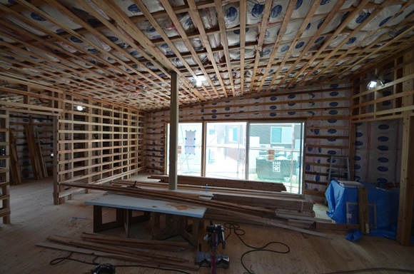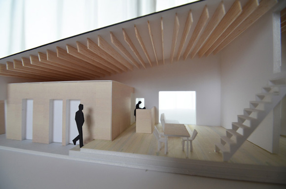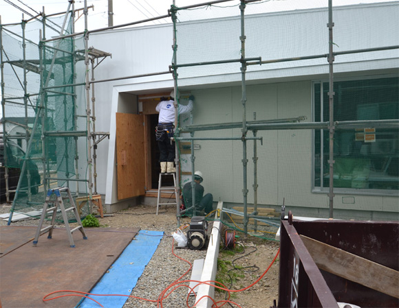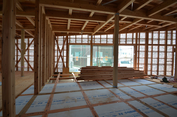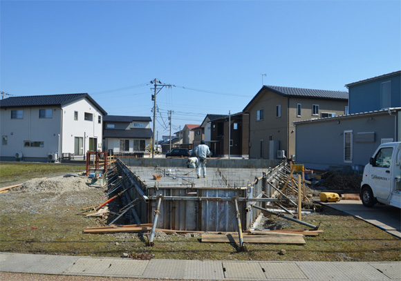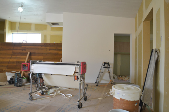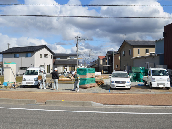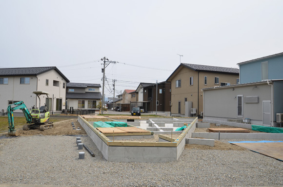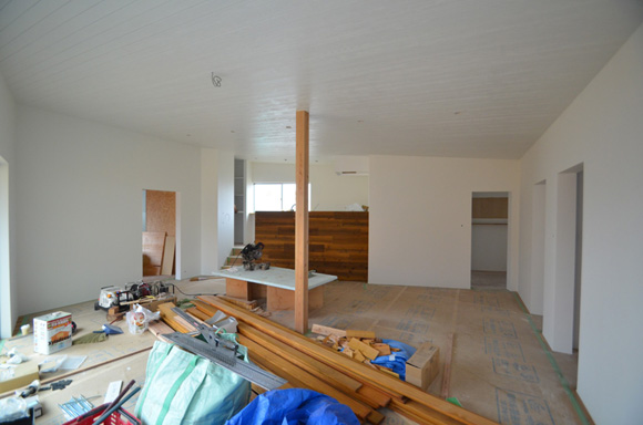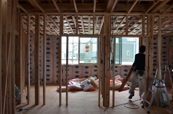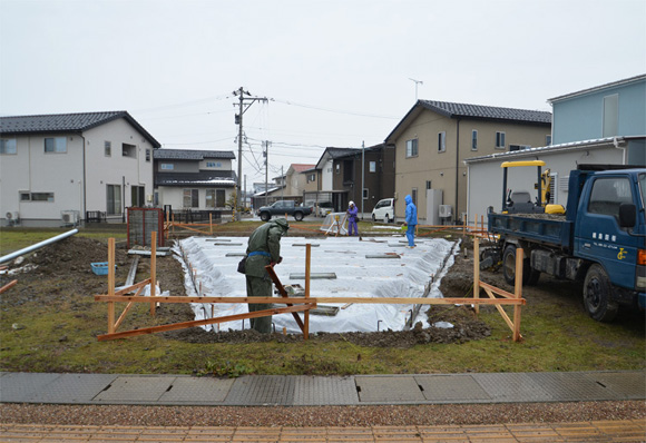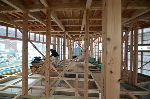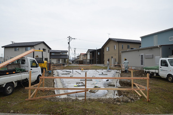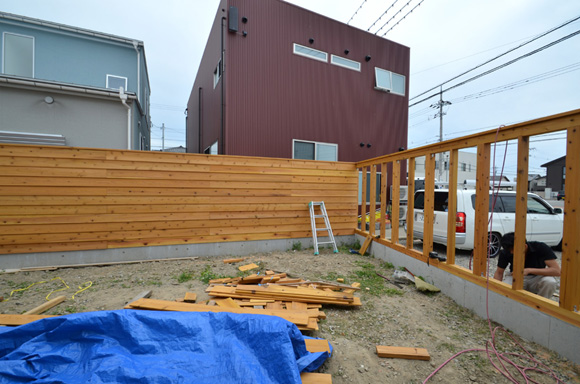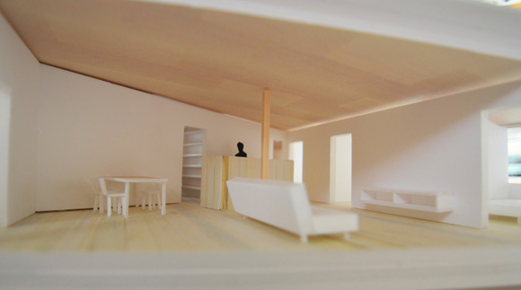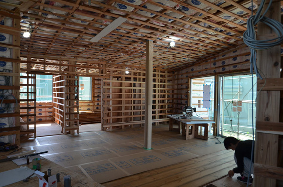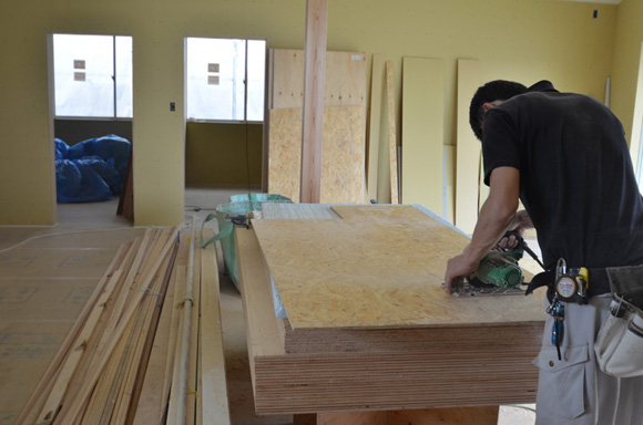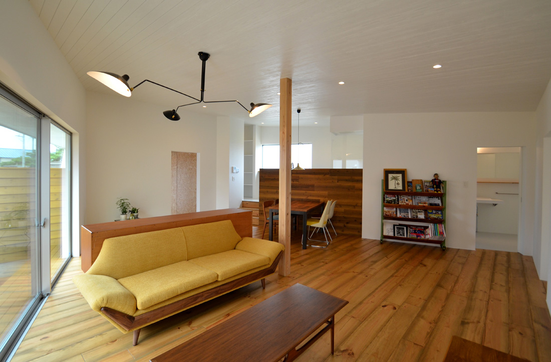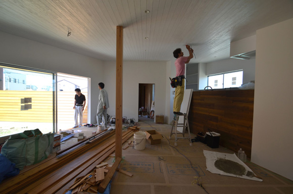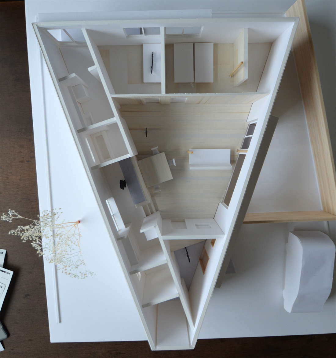 ![]() 2022.7.3 完成して丸七年 表札を付けてほしいということでお邪魔してきましたー。 生活そのままに撮影もさせていただき感謝です。 美味しいスイカごちそうさまでした! ![]() ![]() ![]() ![]() 2016.7.1 完成 クライアントとはじめてお会いしてから二年二ヶ月の時間をかけてようやく引き渡しとなりました。 たくさんの人が一生懸命がんばったおかげでステキなお家となりました。 ![]() IDEEの照明かっちょいー。床のフローリングはパイン材をアンティーク加工したもの。 家具はすべてクライアントがこだわって購入されたものです。おしゃれー。 ![]() 大きな南の窓から採光が入ってきます。4.7mの大開口です。 南北に窓があるので風も通って気持ちいー。 ![]() 勾配天井を板張り白塗装にしてみました。 レンジフードはオリジナルで、キッチンは既製品を使っています。 ![]() 家の向かいにはコンビニが建ち、前面道路は交通量も多い。 騒音対策と西日防止のため窓は設けていない。 ![]() 白い外壁はクライアントの強い希望。 汚れ防止のため外壁はガルバリウム鋼板とした。 ![]() これからご主人が芝生を敷く予定の庭です。 板塀とデッキはKELUNとクライアントで塗装しました。とてもいい思い出です。 デッキは耐久性とコストパフォーマンスの高いセランカンバツ材を使用。 ![]() 板塀の高さは外から人に見られない高さに設定しました。 ![]() ![]() 真鍮の照明。クライアントチョイス。 ![]() ![]() クライアントの希望でキッチンの床レベルを上げました。床下に空間ができたのでキッチン下は床下収納となっています。 キッチンカウンター立ち上がりの壁は味のある足場板を張ってみました。シンクの手元が見えないようになっています ![]() ![]() クサそうな靴があるなと思ったら僕のでした。 ![]() 現場用の照明。一個千円だよん。 ![]() 引戸を壁材と同じOSB合板で作りました。 ![]() OSB合板と現場用の照明が合っています。マグレきたー。 ![]() 男子には羨ましい小便器付きトイレです。 ![]() 外部収納用の部屋。下足の棚は大工さんからクライアントへのプレゼント。 チームワーク力の強い現場でした。 ![]() 寝室はラワン合板を天井と床にサンドイッチ張りしました。心地よいスケール感の部屋です。 ![]() 天井についている怪しい黒い棒はご主人専用ぶら下がり棒さ。 ![]() 寝室脇の大容量ウォークインクローゼット。 ![]() まっしろ! ![]() 朝日が入ってくる側に寝室を設けました。 ![]() 洗面所の棚板はリビングのフローリングであまったものを使いました。ご主人のアイデア。 ![]() 洗面所からサンルームを見る。 ![]() 道路側は騒音対策と西日防止のため窓を設けずにできるだけ建物を絞り、 道路の反対側へは建物を広げて、寝室などの「静」の空間を配置。 外部騒音の影響が少なくなるように考えていくうちに三角の形をした建物に何となく導かれていった。 それから三角の斜め壁はリビングに採光を取り込めるように南へ向けて角度を設定し、1mの外壁後退や駐車スペース、庭、周辺環境を 考慮しながら配置や形状に微調整を加え、この「三角」の形が必然的にできあがった。 計画概要 名称:010 計画内容:新築住宅 計画地:石川県野々市市 構造:木造住宅平屋建て 敷地面積:288.79u(87.35坪) 延床面積:99.89u(30.21坪) 設計期間:2015.9〜2016.1 工事期間:2016.1〜2016.6 撮影:稲森予人 〜ここからは施工中の写真〜 ![]() 2016.6.23 明日からオープンハウスの準備しよっと。 ![]() 2016.6.22 建具工事 クライアントの要望で強化ガラスの扉としました。かなりいい。 ![]() 壁と同材のOSBで引戸作ってみました(笑) チャレンジして失敗することは少ないね。がんばってくれた建具屋さんと監督ありがとう。 ![]() 2016.6.19 完成まであと少し。終わるとさびしくなりますね。 ![]() デッキの塗装うまいなー。誰が塗ったんだろうなー。と思ったら僕が塗ったんでした。 ![]() リビングから三角形の庭を見る。ちょっと角度があるだけで世界が違って見える。 ![]() キッチン横のパントリー。冷蔵庫とか電子レンジとかはそっちに隠しちゃいます。 ![]() 2016.6.12 「6月か7月くらいの暑い日になると思いますけど、板塀は僕たちで塗りましょうよ!」と、軽いノリで設計中にクライアントへ相談した私。 そして昨日、自主塗装の日を迎えました。真夏日のような気温の中でご主人と私で9時からスタートし、終わったのは16時。 熱中症で倒れるんじゃないかと何度か思いましたが無事に塗装を終えることができました。結構いい感じでしょ。 今日も一日精一杯建築がんばりました。 ![]() 2016.6.10 建築は一人で作ることはできません。 ![]() クライアントの希望でJIMBOのスイッチプレートです。ステキでしょ。 ![]() 2016.6.9 クロス張り完了 やっぱりこのリリカラのクロスいいね。塗装のように見えて白がほんと美しい。 このクロスが廃盤になったらKELUNはとても困る。 ![]() 2016.6.8 夕暮れ時。なんだか嬉しそうに大工さんがデッキ工事中 大工さんも明日で大工工事を終える予定とのこと。素晴らしい