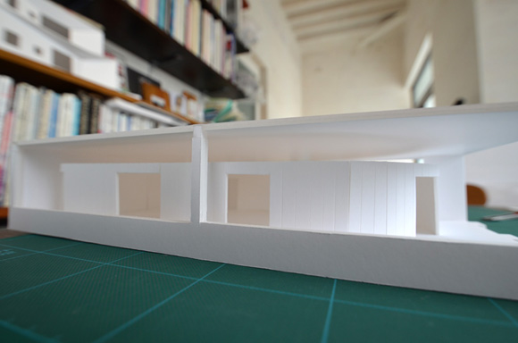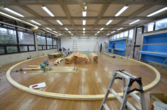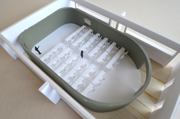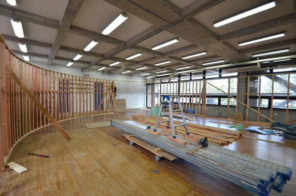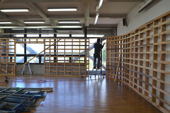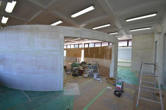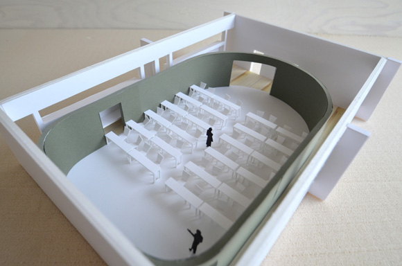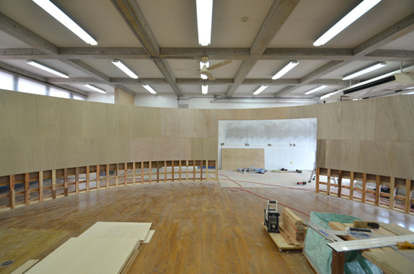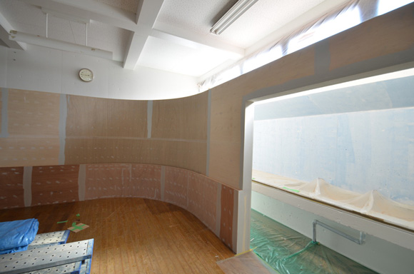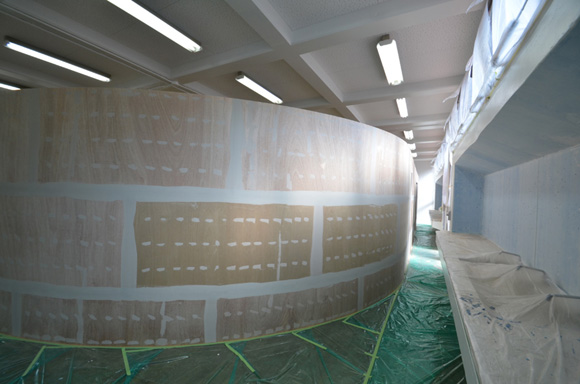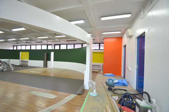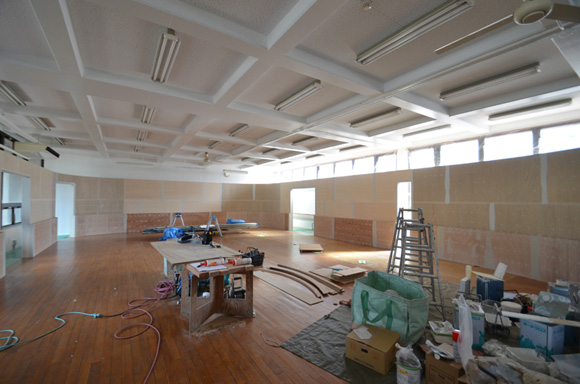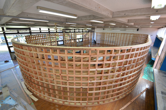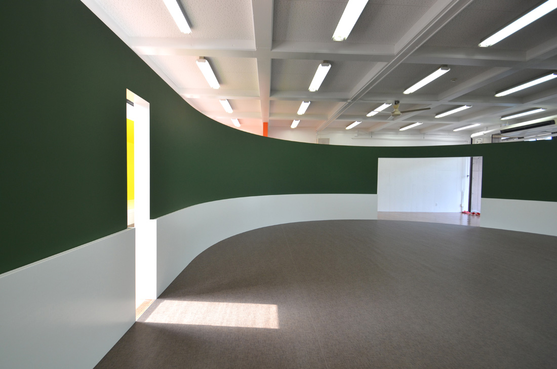 ![]() 2017.3.30 完成 ![]() 曲面壁の緑色部分が黒板になっています。 大小様々な穴から光がこぼれてきます。 ![]() 既存教室に楕円形の壁を挿入。 床には衝撃性、耐水性に強いシートを張りました。 楕円の外側の床材は既存のフローリングです。 ![]() 曲面壁の外側には通路幅分の空きスペースがあります。 ![]() 曲面壁の白い部分は粉受けになっていて粉で床が汚れないよう工夫がされています。 ![]() 粉受けはチョーク置きも兼ねています。 ![]() 元からあった手洗いカウンターも塗装してみました。 ![]() 様々な色が絡みあう教室。色はすべて学校の先生に決めていただきましたー。 ![]() ![]() 間接照明のような光がこぼれてくる。 ![]() 既存のコンクリート壁も白塗装し室内が明るくなるようにしました。 ![]() 配管なども一緒に白塗装。 ![]() 私の字が下手くそなのは気にしないでね。 40周年おめでとうございますm(_ _)m 計画概要 名称:黒板教室 計画内容:教室のリノベーション 計画地:石川県白山市 改修面積:176.40u(53.36坪) 設計期間:2016.12〜2017.1 工事期間:2017.2〜2017.3 撮影:稲森予人 〜ここからは施工中の写真〜 ![]() 2017.3.27 塗装工事が終了し、床シート張りに入りました。 色が絡みあう空間は遊び心があっていいね。 ![]() 耐久性の強い床シート張り中。 ![]() ![]() 2017.3.21 パテ処理を終えて先週の土曜日から塗装がスタートしました。 曲面だと下地がボコボコしたり、パテの跡が見えたりで変になることが多いんだけど、丁寧に仕事してくれたおかげでめっちゃ美しいです。 ここまでキレイになるとは思ってなかったので感動しました。監督さん、大工さん、塗装屋さんのきれいな仕事に感謝ですね! 今週いっぱいかけて塗装工事は終わる予定です。このプロジェクトもあともうちょっと! ![]() 見てくださいな。この美しい曲面壁。 ![]() 2017.3.17 塗装屋さんがひたすらパテ処理をしてくれています。 下地が命のプロジェクトだからね。監督と塗装屋さんに感謝感謝です。 ![]() ![]() ![]() 2017.3.10 一日二度目の現場なう。 自然光が美しい。 ![]() ![]() ![]() 2017.3.10 塗装工事 天井の白塗装も終わり、壁のパテ処理に取り掛かってくれています。 この作業はとてもとても重要。 ![]() 2017.3.4 大工工事 今日から塗装屋さんが入るかも。 このプロジェクトは「色」もかなり使っているので楽しみだなー。 ![]() 粉受け兼チョーク置場製作中。 ![]() 2017.3.2 大工工事 曲げべニアがぐんぐん張られていきます! ![]() ![]() 2017.3.1 大工工事 今日も大工さんが壁はりはり〜。 ![]() ![]() 2017.2.27 大工工事 午後からべニアを張っていくとのこと! 大工さんの仕事が早い!本当は双子なんじゃないのかなー。 ![]() ![]() 2017.2.25 大工工事 大工さんが土曜日でもお仕事がんばってくれています。 おかげ様で下地工事もかなり進んできましたYO。 ![]() ![]() Rが厳しいところは下地材に切り込みを入れて曲げています。 大工さんの努力に感謝です! ![]() 2017.2.24 大工工事 今日も大工さんが下地工事がんばってくれています。 こんな教室なかなかないよね。 ![]() 2017.2.23 大工工事 丸い形の骨組みを大工さんが4日かけて手加工で作ってくれました。 これから楽しみだー。 ![]() ![]() ![]() 2017.2.21 墨出し 大変な仕事だけど頼もしい現場監督に託したので安心。 ![]() ![]() 2017.2.17 現場でクライアントと床のシート、塗装の色など打ち合わせ。 おもしろいことになりそうだ。 ![]() 2017.2.14 壁の高さ、開口の位置、丸のサイズ、色、新旧、素材、塗料。。。 色々なことをぐるぐると考えながらスタディ中。 工期が少ないので急がないとね----┌( ・_・)┘ ![]() ![]() 2017.1.30 工務店さんと現場を確認。これから見積もりに入ります。 よろしくお願いいたします。 ![]() 2017.1.13 初回プレゼン ![]() ![]() 2016.12.20 現地調査 |