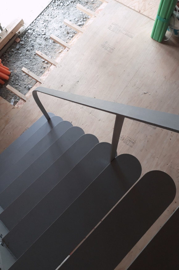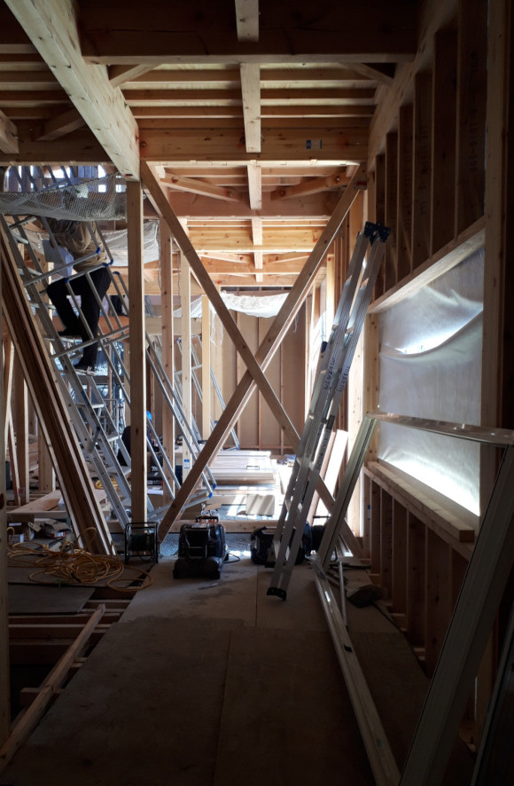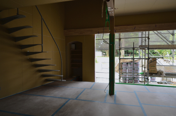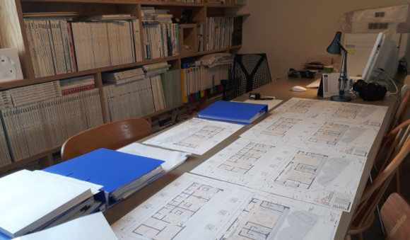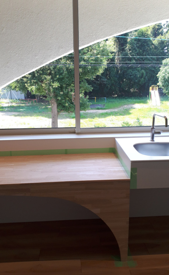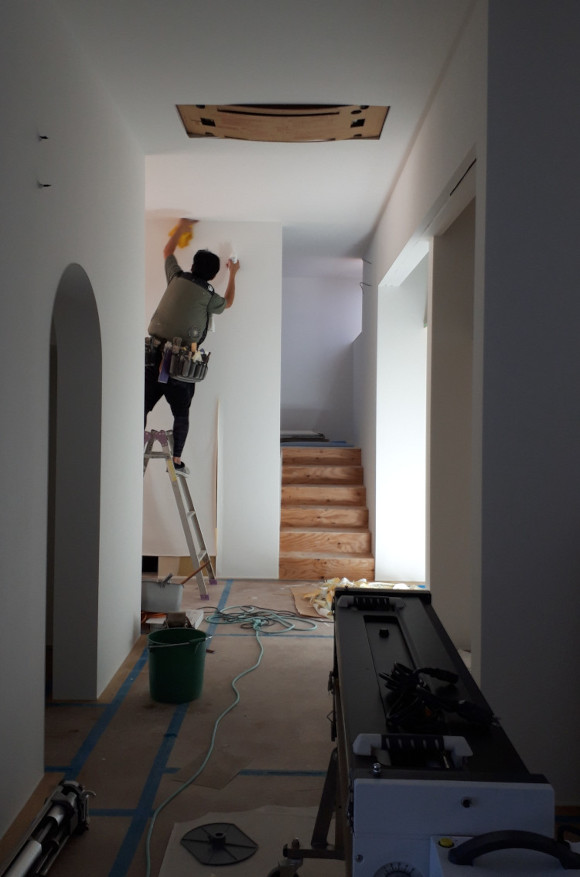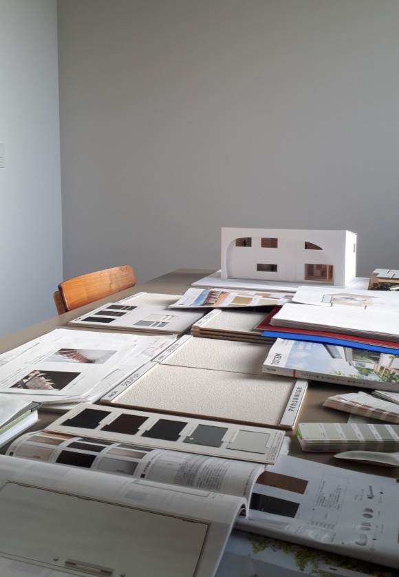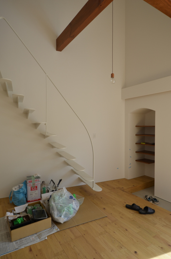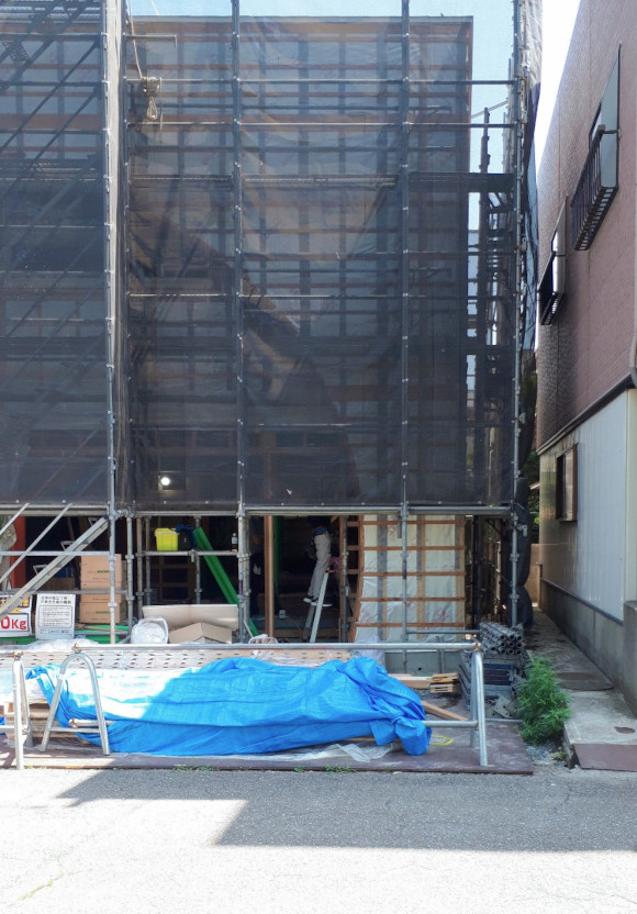 ![]() 2024.5.31 引き渡しを終えて八カ月ほど〜 久しぶりにお邪魔させていただきました(^o^) 芝生が植えられたり表札が付いたり、あ!あと素敵なテーブルも入っていましたー!! お時間作っていただきありがとうございましたm(- -)m 家も近いので飲みの約束をしてパレットさん撮影を終えーる。 ![]() ![]() ![]() ![]() ![]() ![]() ![]() ![]() ![]() ![]() ![]() ![]() ![]() ![]() ![]() 2023.9.27 引き渡しまであと二日。 シンボリックなファサードを持つアパート建築です。 通りすがりの人に「これはなんの建物ですか?」と聞かれるランキング第一位でした(笑) ![]() ![]() 砂の部分にはこれからお施主さんが芝生を植えられる予定。 ![]() お施主さんの強い希望で片持ち階段にチャレンジしてみました。 ![]() ![]() ![]() 子供部屋(^ ^) 独特なRは奥様が描いた線。 ![]() 格子窓の向こう側はキッチン。 ![]() ![]() 間接照明ぽちり。 間接照明下の部分はブラインドが納まるBOXとなっている。 ![]() ウサギの耳のような踏板のデザイン。 ![]() フローリングはサンワカンパニーのアスぺラ。 端部の納まりは大工さんががんばってくれました。 ![]() ![]() シンプル?な造作キッチン。 棚板に照明仕込んでもらいました。 ![]() ![]() ![]() ![]() お施主さんの仕事場。どんな椅子が置かれるのかな(^ ^) ![]() ![]() ![]() ![]() お施主さんの支給でフタガミの真鍮トグルスイッチ。 ![]() これまた独特な形状のデスク。 ![]() ![]() 窓の外にはほのぼの公園が広がる。 ![]() ![]() オーナーさんの仕事道具入れ。塗装はこれから?。 ![]() 小上がりの下を利用して床下収納を作ってみました。 ![]() リビングにも手洗い。 サンワカンパニーのフッカさん。 ![]() カウンターの大理石はお施主さんのご自宅に余っていたものを支給していただいた(^o^) ![]() ご自宅部分のトイレはグレー系で統一。セクシー。 ![]() ご自宅部分のお風呂はLIXILのスパージュです。セクシー。 ![]() 集成材をRでくりぬいてファサードと同じデザインのデスクを作っていただきました。 20代の頃からやってみたかったので夢叶いました(笑) ![]() ![]() ![]() toolboxのミニキッチンすてき。シンクのくりぬき部分がツボ。 ![]() 賃貸部の水まわり。 ![]() ![]() ランドリールーム付き。 ![]() 賃貸部階段。 お施主さんががんばって塗られた踏板の塗料はオスモのチーク。 ![]() ![]() ちょうどいいところにトンボが飛んでいる(^ ^) 公園の良さが伝わるナイスな写真。 計画概要 名称:PALETTE 計画内容:長屋 計画地:石川県金沢市 構造:木造二階建て 敷地面積:202.55?(61.27坪) 延床面積:195.62?(59.17坪) 設計期間:2021.9?2023.1 工事期間:2023.1?2023.9 撮影:稲森予人 ![]() 2023.9.23 検査業務などを終えて最終お施主さんに確認していただく一日m(- -)m&小立野ランチ。 あと数日で引き渡しとなります。 お施主さんとはじめてお会いして丸二年の仕事が終わるとなるとなんだか寂しくなるなー。 私も撮影させていただこっと。お楽しみに―。 ![]() 2023.9.20 駐車場は三台です(^ ^) ![]() ![]() ![]() 2023.9.18 続・お施主さん塗装少しだけお手伝い?。 飽きたご様子のお子様(^ ^) ![]() 2023.9.16 お施主さん塗装少しだけお手伝い?。養生養生。 ![]() 2023.9.8 続々と家具が到着。 外観デザインに類似したデスクを作らせていただきました。 ![]() お施主さんから支給していただいた大理石四枚を洗面カウンターに採用しました。 ![]() 2023.9.4 今日は現場定例! 暑い中皆さまお疲れさまでしたm(- -)m 検査や引き渡しの日などが決まりました。 現場は外構部分の工事を行っております。あと少しで完成だ。 ![]() はじめて薄いCB使ってみました。結構いいもんだね。 ![]() 2023.8.29 外部の足場がとうとうばらされました。 ようやくお披露目?(^ ^) 完成まであと少し!! ![]() お施主さんが見つけてこられた塩ビタイルがすごくいい。 ![]() 2023.8.21 今日でクロス屋さんのお仕事終わる予定です。 ![]() 2023.8.2 ![]() 片持ち階段。 ![]() 2023.7.31 外壁の色も決まりまして現場は下地作業中です! 日陰を探しながら作業されていますm(- -)m 内部では大工さん二人でボード張り作業中です。 二重で張る部分も多く面積も広いので恐縮です(◎_◎;) ![]() 2023.7.28 現場打合せ(^ ^) 日陰を探しつつ(汗) みんなで色決め。 ![]() 2023.7.24 R壁の小口はデラクリートで施工していただいています。 最小曲げ半径2.4mまで対応可能とのこと。 ![]() 2023.7.7 大工さんお二人で賃貸部の階段施工中です。 踏板は集成材下地に防音シート張ってまた仕上げ材がきます。 壁面も防音シート上に強化石膏ボードを張ります。 防音しっかりと。 ![]() 2023.7.4 棟梁が木建の枠を仕込んでいます。 ![]() 2023.6.21 今日は現場で打合せでした。 取り付けられた片持ち階段がめっちゃ好み。 ![]() ![]() 2023.6.20 サンワカンパニーの遮音フローリングを採用。デザインもGOOD。 どこまで効果を発揮してくれるかな。 ![]() 2023.6.19 今回、防振吊木(黒いやつ)を採用しました。 上階からのドンドン振動を軽減させています。 ![]() はじめて宇佐美工業の薄型ベントキャップを入れてみた。 ![]() 2023.6.9 運ばれてきているのは強