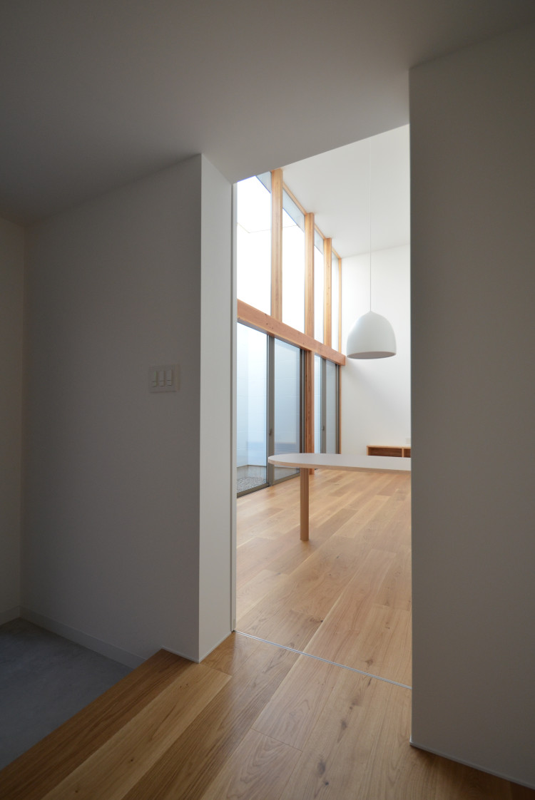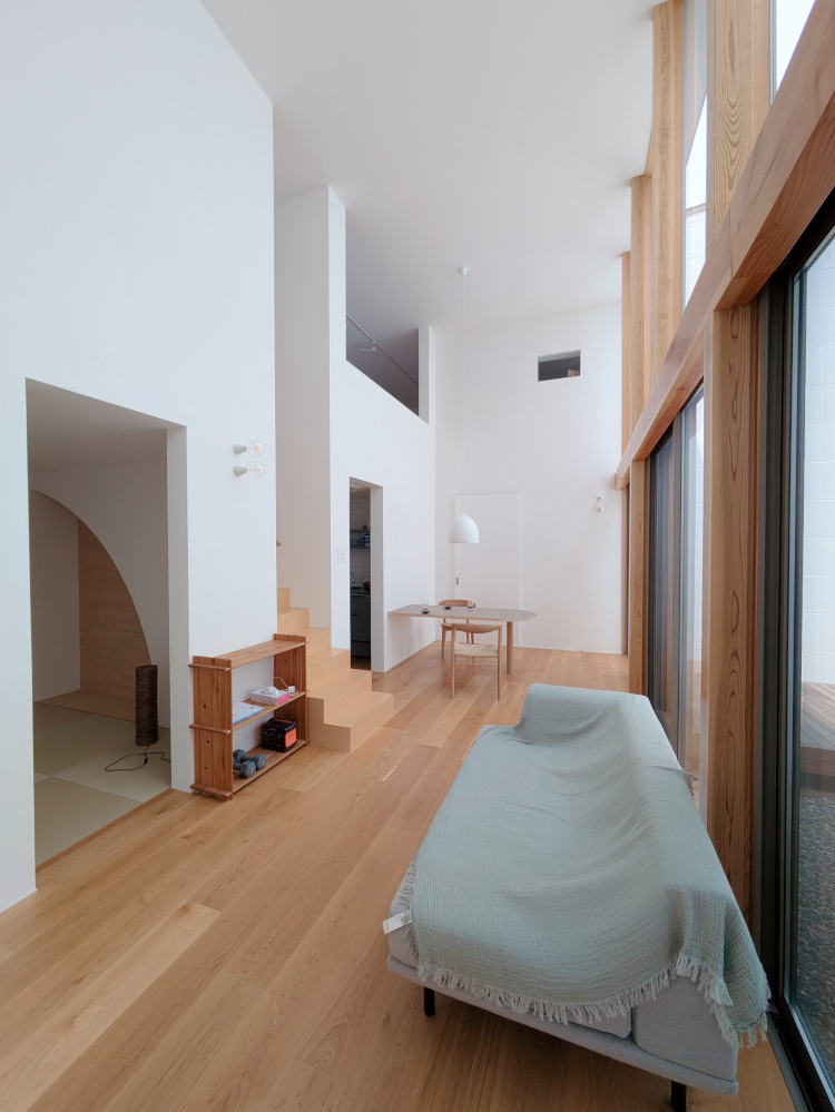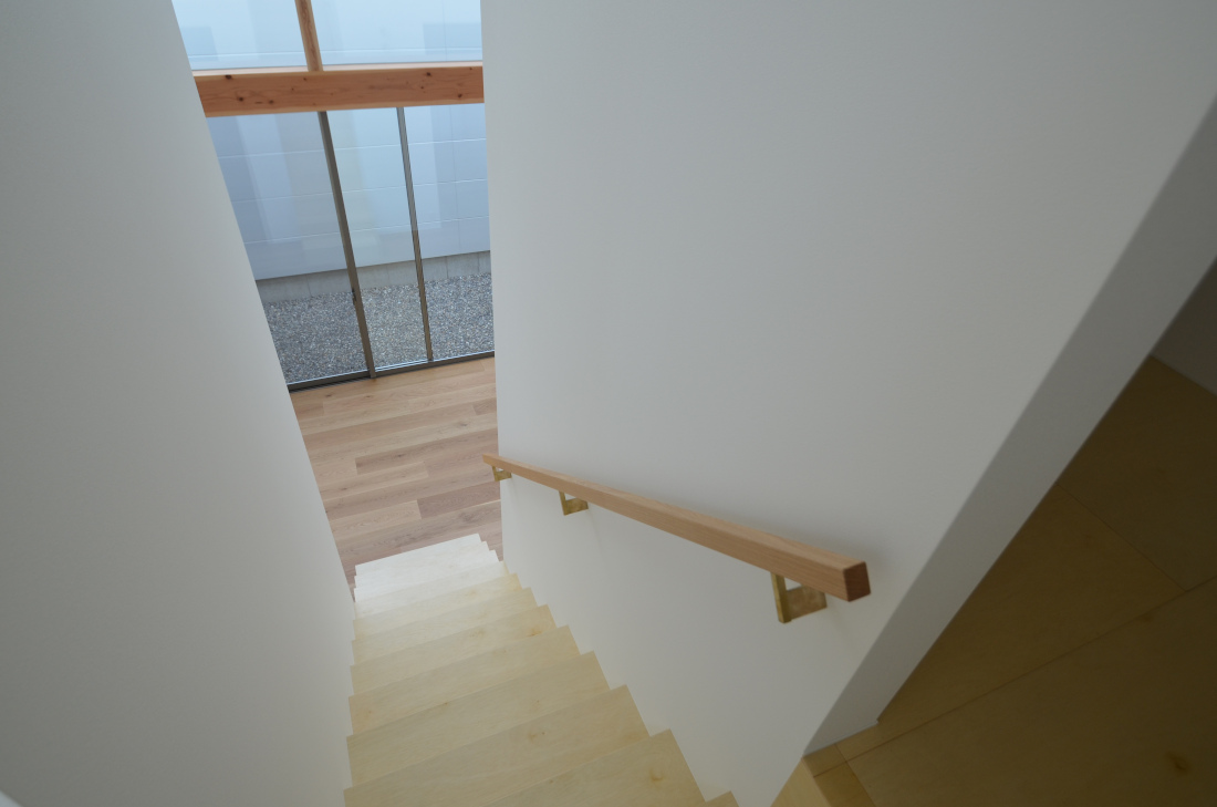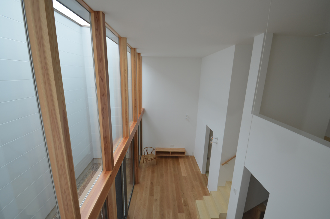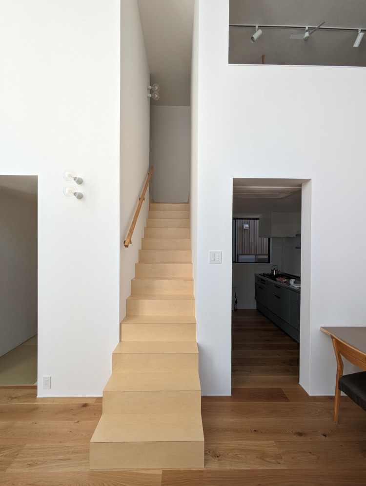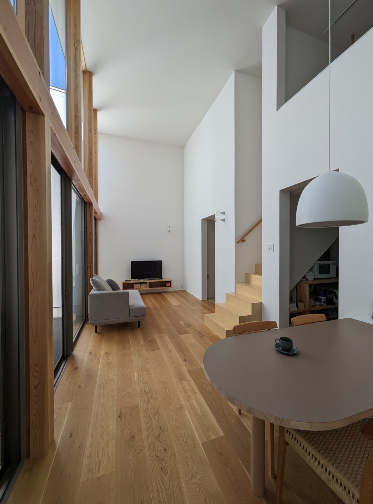 ![]() 2025.7.9 久しぶりにBONDさんへ。 元気だったかい〜。 せっかくなので撮影もさせていただきました。 ご協力ありがとうございましたーm(- -)m ![]() ![]() ![]() ![]() ![]() ![]() ![]() ![]() 2024.8.4 引き渡しを終えて数カ月。 雑誌取材でお邪魔させていただきました。 バイクの雑誌じゃないよ! 外壁がいい色になってきたな〜。 ![]() ![]() 2024.5.13 嘘みたいな空だったので撮影もさせていただきました。携帯で(笑) 長居しすぎて失礼いたしましたー(^ ^) ![]() ![]() ![]() ![]() ![]() ![]() ![]() ![]() ![]() ![]() ![]() ![]() ![]() 引き渡し 完成となりましたー。ぱちぱちぱち(^ ^) 暑い夏を乗り切りながら難しい納まりを丁寧に作っていただいた監督さん、大工さん、すべての職人さんに感謝申し上げます。 コートハウスが作り出す特別感が住まうご家族の幸せを高めてくれることでしょう。 逆に仕事に行きたくなくなるのではと心配しつつ。お幸せにお過ごしくださいませ?。 完成おめでとうございます。 ![]() これは家です!! ![]() 二階から吹き抜けリビングを介して光庭(コート)を見る。 お施主さんが自主施工でお庭を作る予定。砂利は仮敷き。 ![]() 天井に繋がりを持たせて光&風が届くように意識しました。 ![]() この写真一番好き。 12帖のリビング空間とは思えないでしょ。 ![]() 北向きの大窓なので直接の太陽光は入ってきません。 柔らかい間接光で室内を満たしてくれる光庭(コート)です。 ![]() ご主人チョイスでオークの複合フローリングを採用しました。 ![]() 私のYチェアがしっくりきすぎている笑 二層のコートってなかなかないよねー。 ![]() デッキからダイニングを見る。 サッシが目立たないように外にふかして納めてもらっている。 素晴らしい施工者さんがいてこそ成り立つお仕事です。 ![]() 隙間に階段がある感じを作りたかった。 モーゼの十戒みたいでいいかんじじゃない? ![]() 吹き抜けからフリッツハンセンを見る。 上から見ても美しいね。掃除もしやすいし。 ![]() 階段に座りたい奥様の要望を叶えるため三段ほどリビングにはみ出ている。 二段でもなく四段でもなく「三段」というのが個人的にGOOD。 ![]() 玄関からふっとギャップのある吹き抜けリビングへinする。 玄関からの明るさと開放感は狙ったわけではなくただのマグレだ! ![]() 玄関脇に2.2帖の物置。 スコップとかタイヤとかガシガシ壁にぶつけるのでラワン仕上げとしました。 奥に見えるのはランドリールーム。大きな窓があるので明るい?。 ![]() 玄関まわり完璧。 監督&棟梁に感謝。 ![]() 玄関ドアはスリガラスと強化ガラスのペア。 スプルスにオスモ塗装でハンドルはユニオン製。 ![]() 特別な気持ちでお出かけすることできるでしょう。 カタチの力というものを知っている分、カタチという存在から逃げない建築士でいたい。 ![]() 玄関ポーチ内は5.3帖で自転車を置いたりできる。 ![]() 子供の頃に行って心に残った木下大サーカスの入り口デザインを真似ました。 実現することができてよかったです(^ ^)クライアントに感謝。 ![]() デッキ材にはセランカンバツを採用。棟梁の美しい仕事。 経年変化でもっと素敵になっていくことでしょう。 ![]() ![]() リビング脇に三帖のおこもり和室。 床の間は階段下を有効利用しました。 ![]() タモ材の手摺。階段踏板は集成材下地にラワン張り。 ![]() ![]() 二階の脇にある三帖のWIC。 床は白ラワンの半艶ウレタン塗装。 こんな場所でも下地材を丁寧に施工してくれた棟梁の技が光ります。 ![]() ワンルーム形式でつくった繋がりのある二階寝室。10.7帖。 天井にあるご主人専用懸垂棒は万が一使われなくなったとしても服をかけるとちょうどいい位置&高さにしました笑 ![]() youtubeで宮崎駿さんが窓の外の景色を見ながら階段下りてくるシーンが好きでここで実現。 なんの話やねん笑 ![]() 集成材にメラミンを張っただけのテーブルを作ってもらった。 脚は一本で支えていてお掃除もしやすい。色はご主人チョイス。 動線にあるテーブルなので身体ぶつけてもいたくないように丸くした優しい私。 ![]() 奥様チョイスのリクシルキッチン ノクトのオリーブグレー。 リビングと切り離したクローズ型のキッチン形式とした。 ![]() どんな土地(環境)にも空は必ずあるのであーる。 計画概要 名称:BOND 計画内容:一戸建ての住宅 計画地:石川県白山市 構造:木造二階建て 敷地面積:202.26u(60.57坪) 延床面積:95.63u(28.92坪) 設計期間:2022.12〜2023.5 工事期間:2023.5〜2024.1 撮影:稲森予人 ![]() 2023.10.31 監督さんがハンガーパイプ&シール&ポストなどを取付中。よく働く監督さんです。 明日は完了検査。週末オープンハウスで来週引き渡し。 ![]() ![]() ![]() ![]() ![]() ![]() ![]() ![]() ![]() 2023.10.28 今日はポーチ土間の型枠ばらしと設備屋さんが試運転をしてくれていました(^ ^) ![]() 2023.10.25 養生がはがされて引き渡し間近の現場です。 とてもきれいな仕上がりに驚きつつ監督さん大工さんすべての職人さんに感謝です。 暑い夏が続くなか本当にがんばっていただきました。 職人さんたちのか