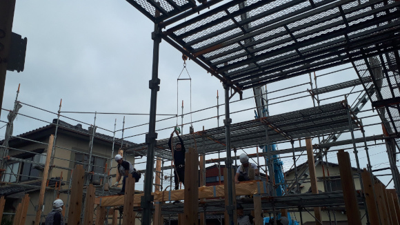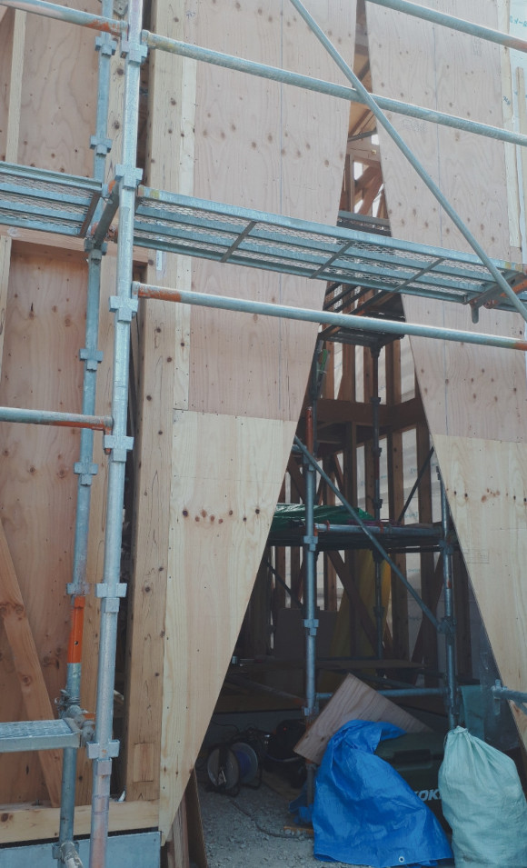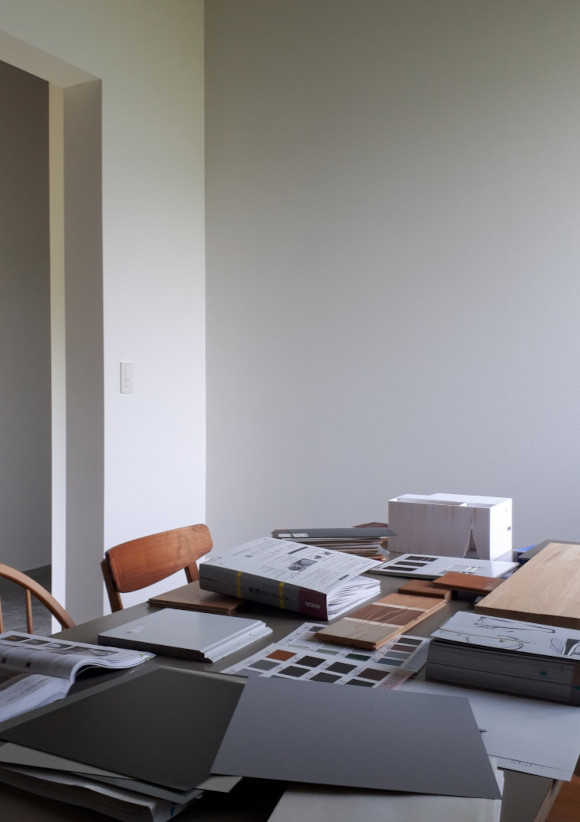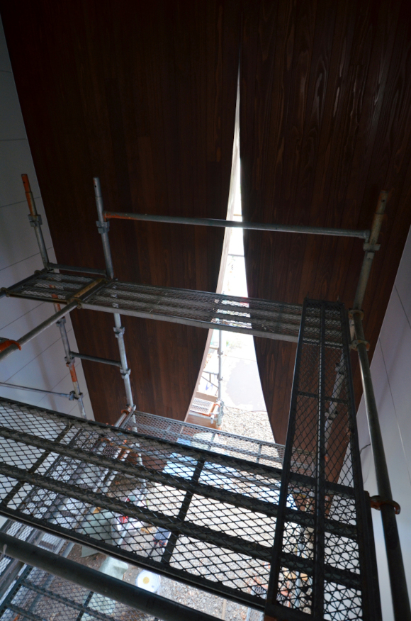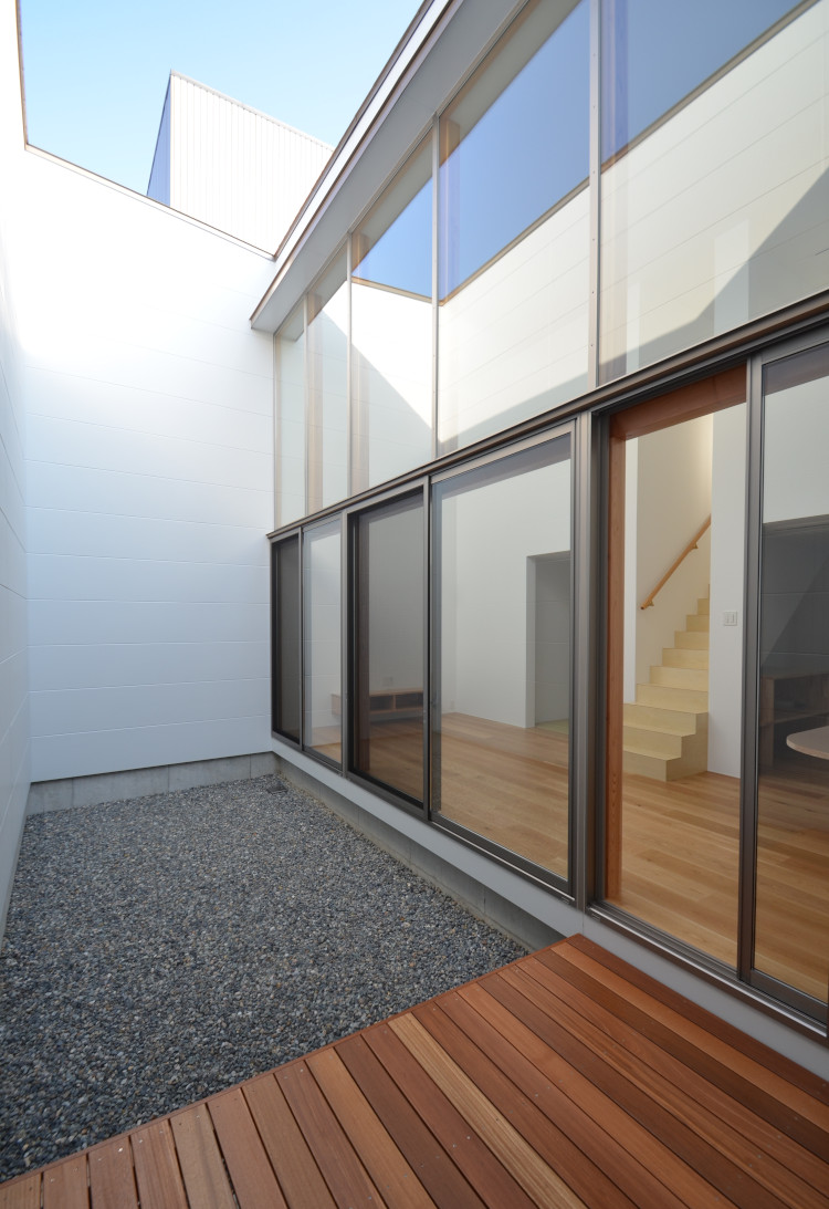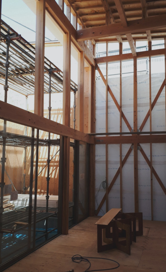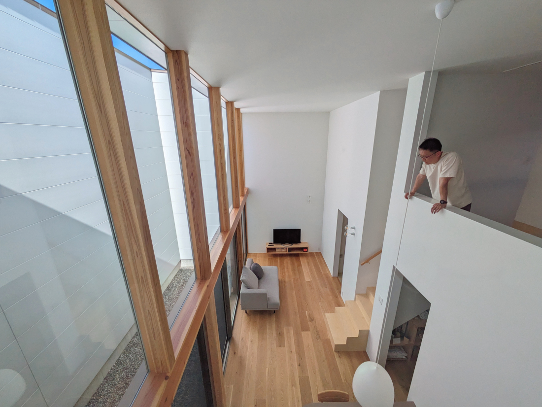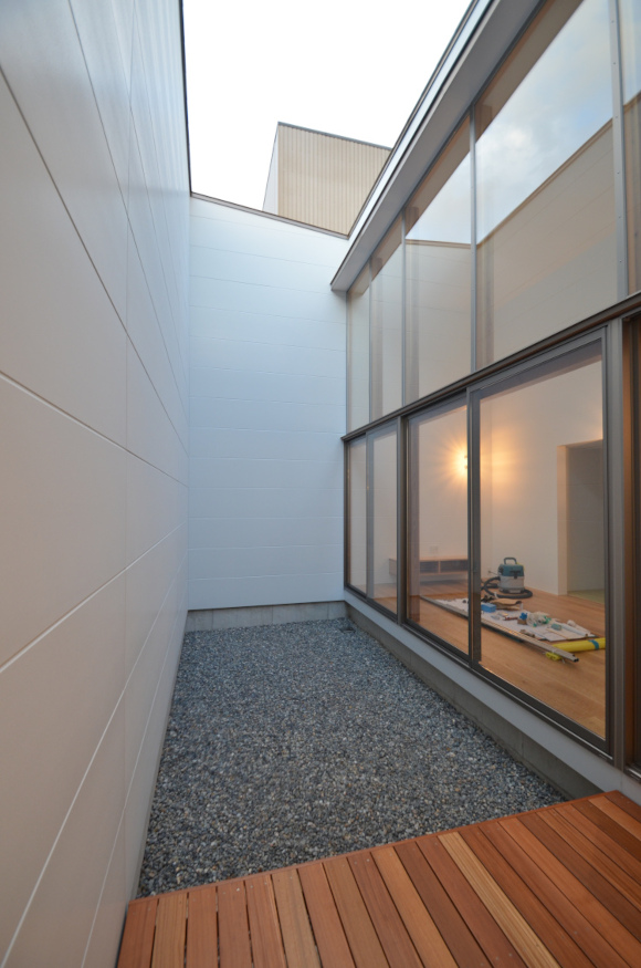 ![]() 2025.7.9 久しぶりにBONDさんへ。 元気だったかい〜。 せっかくなので撮影もさせていただきました。 ご協力ありがとうございましたーm(- -)m ![]() ![]() ![]() ![]() ![]() ![]() ![]() ![]() 2024.8.4 引き渡しを終えて数カ月。 雑誌取材でお邪魔させていただきました。 バイクの雑誌じゃないよ! 外壁がいい色になってきたな〜。 ![]() ![]() 2024.5.13 嘘みたいな空だったので撮影もさせていただきました。携帯で(笑) 長居しすぎて失礼いたしましたー(^ ^) ![]() ![]() ![]() ![]() ![]() ![]() ![]() ![]() ![]() ![]() ![]() ![]() ![]() 引き渡し 完成となりましたー。ぱちぱちぱち(^ ^) 暑い夏を乗り切りながら難しい納まりを丁寧に作っていただいた監督さん、大工さん、すべての職人さんに感謝申し上げます。 コートハウスが作り出す特別感が住まうご家族の幸せを高めてくれることでしょう。 逆に仕事に行きたくなくなるのではと心配しつつ。お幸せにお過ごしくださいませ?。 完成おめでとうございます。 ![]() これは家です!! ![]() 二階から吹き抜けリビングを介して光庭(コート)を見る。 お施主さんが自主施工でお庭を作る予定。砂利は仮敷き。 ![]() 天井に繋がりを持たせて光&風が届くように意識しました。 ![]() この写真一番好き。 12帖のリビング空間とは思えないでしょ。 ![]() 北向きの大窓なので直接の太陽光は入ってきません。 柔らかい間接光で室内を満たしてくれる光庭(コート)です。 ![]() ご主人チョイスでオークの複合フローリングを採用しました。 ![]() 私のYチェアがしっくりきすぎている笑 二層のコートってなかなかないよねー。 ![]() デッキからダイニングを見る。 サッシが目立たないように外にふかして納めてもらっている。 素晴らしい施工者さんがいてこそ成り立つお仕事です。 ![]() 隙間に階段がある感じを作りたかった。 モーゼの十戒みたいでいいかんじじゃない? ![]() 吹き抜けからフリッツハンセンを見る。 上から見ても美しいね。掃除もしやすいし。 ![]() 階段に座りたい奥様の要望を叶えるため三段ほどリビングにはみ出ている。 二段でもなく四段でもなく「三段」というのが個人的にGOOD。 ![]() 玄関からふっとギャップのある吹き抜けリビングへinする。 玄関からの明るさと開放感は狙ったわけではなくただのマグレだ! ![]() 玄関脇に2.2帖の物置。 スコップとかタイヤとかガシガシ壁にぶつけるのでラワン仕上げとしました。 奥に見えるのはランドリールーム。大きな窓があるので明るい?。 ![]() 玄関まわり完璧。 監督&棟梁に感謝。 ![]() 玄関ドアはスリガラスと強化ガラスのペア。 スプルスにオスモ塗装でハンドルはユニオン製。 ![]() 特別な気持ちでお出かけすることできるでしょう。 カタチの力というものを知っている分、カタチという存在から逃げない建築士でいたい。 ![]() 玄関ポーチ内は5.3帖で自転車を置いたりできる。 ![]() 子供の頃に行って心に残った木下大サーカスの入り口デザインを真似ました。 実現することができてよかったです(^ ^)クライアントに感謝。 ![]() デッキ材にはセランカンバツを採用。棟梁の美しい仕事。 経年変化でもっと素敵になっていくことでしょう。 ![]() ![]() リビング脇に三帖のおこもり和室。 床の間は階段下を有効利用しました。 ![]() タモ材の手摺。階段踏板は集成材下地にラワン張り。 ![]() ![]() 二階の脇にある三帖のWIC。 床は白ラワンの半艶ウレタン塗装。 こんな場所でも下地材を丁寧に施工してくれた棟梁の技が光ります。 ![]() ワンルーム形式でつくった繋がりのある二階寝室。10.7帖。 天井にあるご主人専用懸垂棒は万が一使われなくなったとしても服をかけるとちょうどいい位置&高さにしました笑 ![]() youtubeで宮崎駿さんが窓の外の景色を見ながら階段下りてくるシーンが好きでここで実現。 なんの話やねん笑 ![]() 集成材にメラミンを張っただけのテーブルを作ってもらった。 脚は一本で支えていてお掃除もしやすい。色はご主人チョイス。 動線にあるテーブルなので身体ぶつけてもいたくないように丸くした優しい私。 ![]() 奥様チョイスのリクシルキッチン ノクトのオリーブグレー。 リビングと切り離したクローズ型のキッチン形式とした。 ![]() どんな土地(環境)にも空は必ずあるのであーる。 計画概要 名称:BOND 計画内容:一戸建ての住宅 計画地:石川県白山市 構造:木造二階建て 敷地面積:202.26u(60.57坪) 延床面積:95.63u(28.92坪) 設計期間:2022.12〜2023.5 工事期間:2023.5〜2024.1 撮影:稲森予人 ![]() 2023.10.31 監督さんがハンガーパイプ&シール&ポストなどを取付中。よく働く監督さんです。 明日は完了検査。週末オープンハウスで来週引き渡し。 ![]() ![]() ![]() ![]() ![]() ![]() ![]() ![]() ![]() 2023.10.28 今日はポーチ土間の型枠ばらしと設備屋さんが試運転をしてくれていました(^ ^) ![]() 2023.10.25 養生がはがされて引き渡し間近の現場です。 とてもきれいな仕上がりに驚きつつ監督さん大工さんすべての職人さんに感謝です。 暑い夏が続くなか本当にがんばっていただきました。 職人さんたちのか
