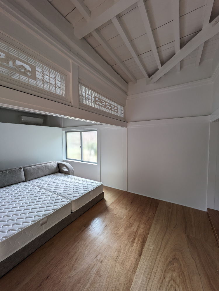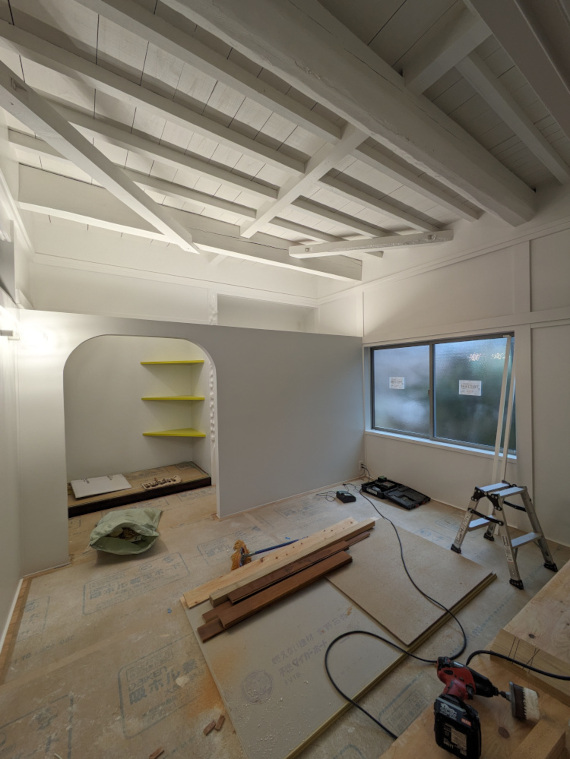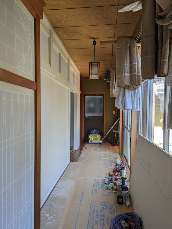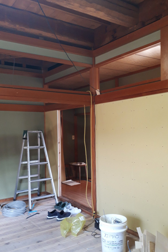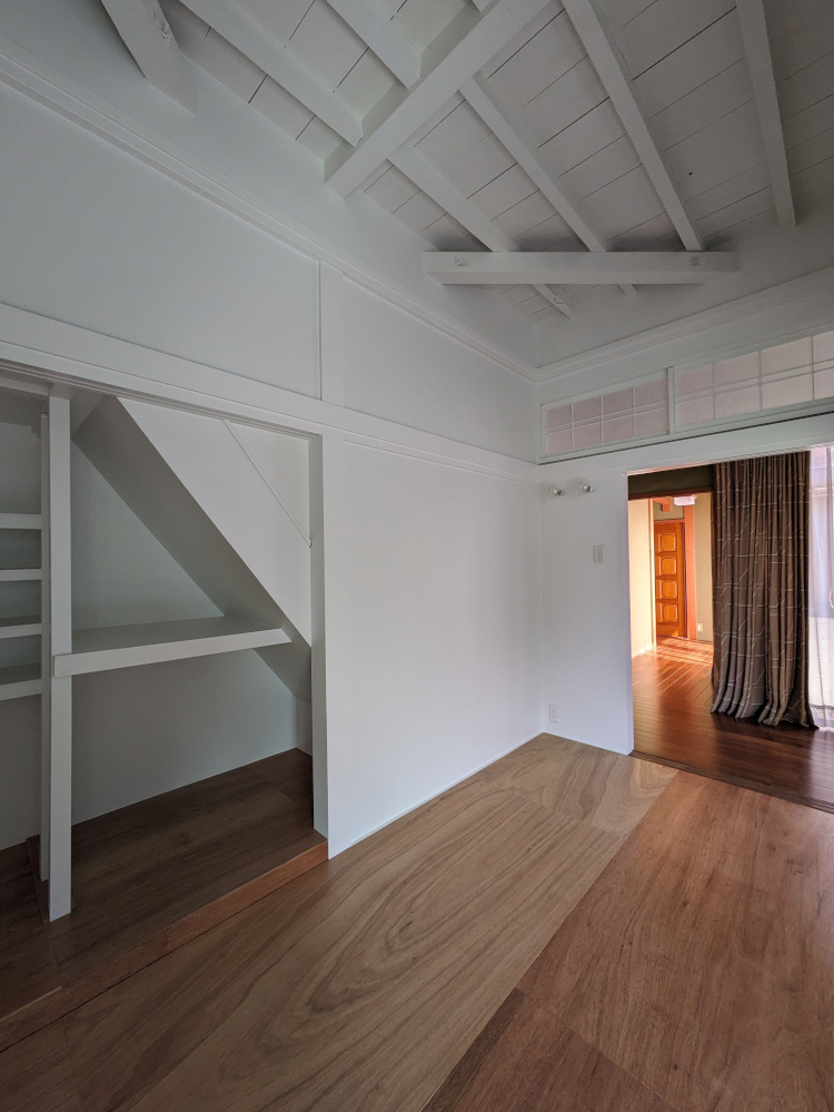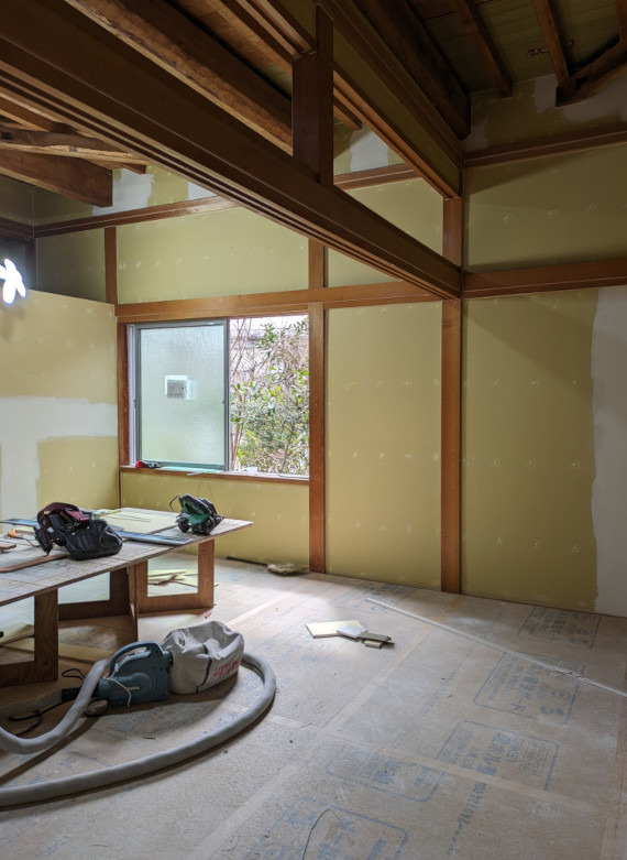 ![]() 2024.3.17 明日はいよいよ引き渡し 元お施主様からご実家改修のご相談をいただきスタートしたプロジェクト。 その日には頭の中でプロジェクト名は決まっていたんだけど直接的過ぎてなんだかな〜。と思っていた。 だから英語に変換して「Filial piety」とさせていただきました。 既存のものにどれだけ手を加えるか。そもそも私が役に立てるのか。 最初は悩んだが思い切っていこうと決めた。 使い勝手、優しさ、デザイン、コスト、工期色々なものを考慮しながら取り組ませていただいたつもりです。 短い工期でキレイな仕上がりを実現してくれた施工者さんに感謝。 そしてなによりこの不思議な提案にGOサインをくれたお施主様ご家族の懐の深さに感謝申し上げます。 皆様本当にありがとうございました。 ![]() 白って不思議です。 ![]() きれいになったね〜。 ![]() 書院と床の間は残しました。 ![]() 元々あったものに手を加えて美しさを与えてあげれたことは自信もっていいかも。 障子も白塗装。監督さん塗装屋さんありがとう。 ![]() ![]() ![]() 床の間はそのまま残しつつお母さんのご趣味であるお花を飾っていただくスペース。 ![]() ![]() ライトアップも可能。 ![]() 床柱も白に塗る罰当たりな建築士。 ![]() ![]() 旧押し入れ内部の棚も白塗装。 ![]() 黄色の色味はお父さんチョイス。 ![]() ![]() ![]() 旧押し入れの襖を取っ払ってWICに変身。 旧天袋にエアコンを仕込みました。 ![]() 廊下側から見る。 どこで白を見切るかはとてもうまくいったような気がします。ありがとうございます(-人-) ![]() 廊下が少しぷかぷかしていたこともあり下地調整しつつフローリングを増し張りさせていただきました。 大きな屋敷なので廊下もながーいですがとてもキレイに大工さんに仕上げていただきました(^o^) 無垢のチークフローリングをチョイスしたのはそう!私です!誰か褒めてくれ!完璧なチョイス! ![]() ![]() 既存のトイレに木製L型手すりを取り付け。 タイル壁で下地位置不明のため大工さんの板張りをお願いしました。 みんなの優しさが集結しました。 ![]() 工期、使い勝手、コスト等を考慮して既製品のユニットバスと洗面を入れさせていただきました。 仕込めるところにはすべて断熱材入れ込みました。 色味はすべてお母さんチョイス(^ ^)エアコンついてるぜ! ![]() 大工さんの素晴らしきお仕事。木製手摺が入りました。 これかなり大変な技術が必要なんですが!説明すると長くなるので割愛! ![]() ![]() 改修前 ![]() 改修前 計画概要 名称:Filial piety 計画内容:一戸建ての住宅 リノベーション 計画地:石川県能美市 構造:木造二階建て 延床面積:不明 そのうち改修面積:73.58u(22.25坪) 設計期間:2023.12〜2024.1 工事期間:2024.2〜2024.3 撮影:稲森予人 ![]() 洗面所まっしろにしました。 ![]() 2024.3.13 黄色の引き戸が入りました〜。 ![]() ![]() 2024.3.11 欄間、障子、床の間を白く塗る罰当たりな建築士m(- -)m ![]() ![]() ![]() 2024.3.7 地震の影響で外壁にできたクラックを補修。 キレイな仕事だこと。 ![]() 2024.3.6 洗面所と浴室に大工さん&設備屋さんが入ってお仕事中。 床にコンクリートが打たれて断熱入って近々ユニットバスが入ってきます。 リフォームで水回りを触る場合は生活者さんに数日ご迷惑をかけるのでソワソワします。 ![]() 旧天袋にエアコンを仕込むの巻。 ![]() 2024.3.5 照明が点灯! お施主様からも褒めていただきましてホッと一息(^o^)/ 「お施主さんなにか言ってた?」と監督さんに確認ばかりしていましたが(笑)よかったよかった! ![]() ![]() ![]() 間接照明点灯。 ![]() 2024.3.4 キレイに塗装していただきありがとうございます(^o^) こちらのお部屋はあとエアコンと建具とハンガーパイプが取り付けられます。 ![]() 段差を解消するため合板も一枚増し張りしていただきました(-人-)アリガトウゴザイマス ![]() 2024.3.1 真っ白!私の心のような白さです!嘘です! 今日は監督さん大工さん設備屋さん塗装屋さんとたくさんお仕事中です。 リノベーションならではの大変さが出没しているようですがみなさんがんばってくれています。 ![]() 欄間と障子も白くなって戻ってくる予定です。 ![]() 床が部分的にプカプカしておりましたので補修しながら増し張りさせていただいております。 無垢のチーク材いいね(^ ^) 変わっていないようで良くなっている。 ![]() 浴室と洗面所に解体屋さんが入りました。すっぽんぽん。 結構大きい音していたんじゃないのかな。。恐縮です! これから断熱材なども仕込みなおしていきます。 皆様よろしくお願いいたします! ![]() 2024.2.28 今日も監督さんと大工さんががんばってくれています。 寝室にある一枚のサッシを入れ替えさせていただきました。 Low-eペアガラス樹脂サッシです。 断熱も入れさせていただいてできるだけ温かく。 ![]() 2024.2.26 フローリングとサッシが届いています。 ツヤのあるチークフローリングと既存建物の相性が良いかなと思いましてご提案させていただきました。 久〜しぶりにキャスオンラインさんのフローリングです。 