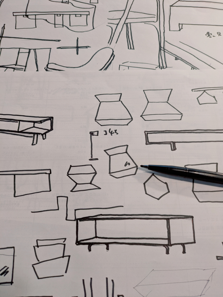 スツールだから斜め上から見られることを意識してシルエット決めた方がいいのかも〜。