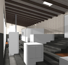 大きなワンルームの中に複数の機能を持った箱(部屋)がある